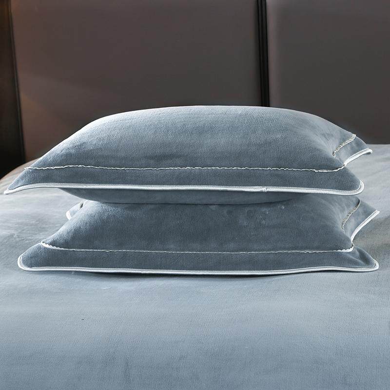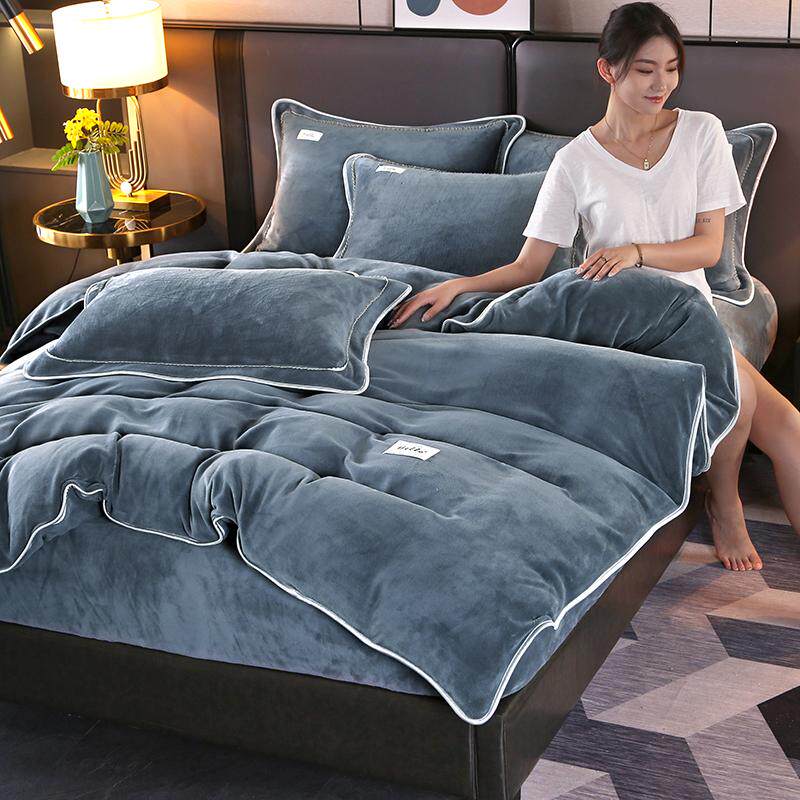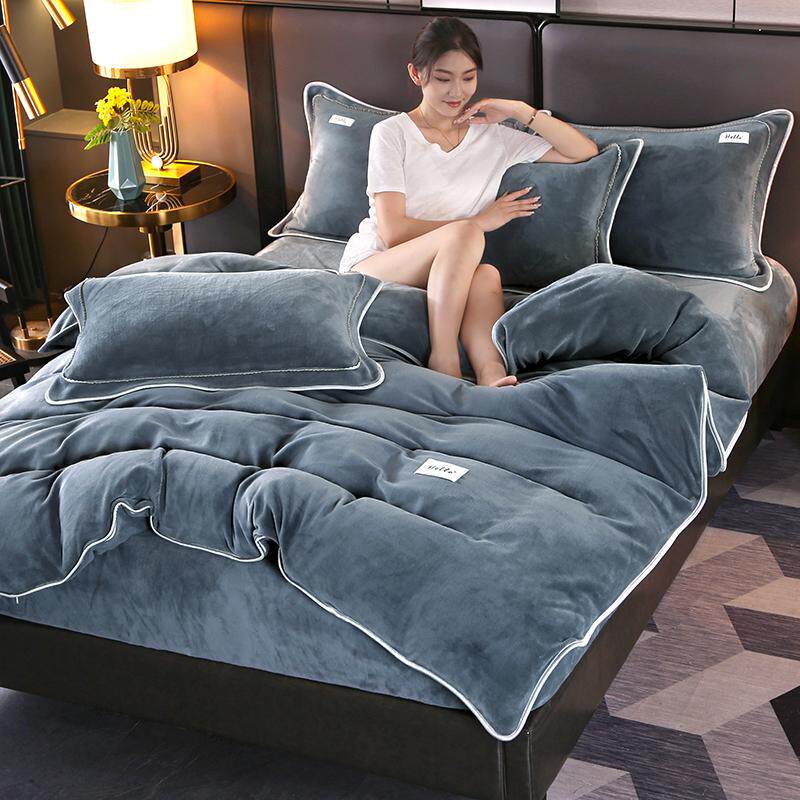 新款纯色牛奶绒四件套床笠款珊瑚绒床单式被套加绒加厚保暖金貂绒