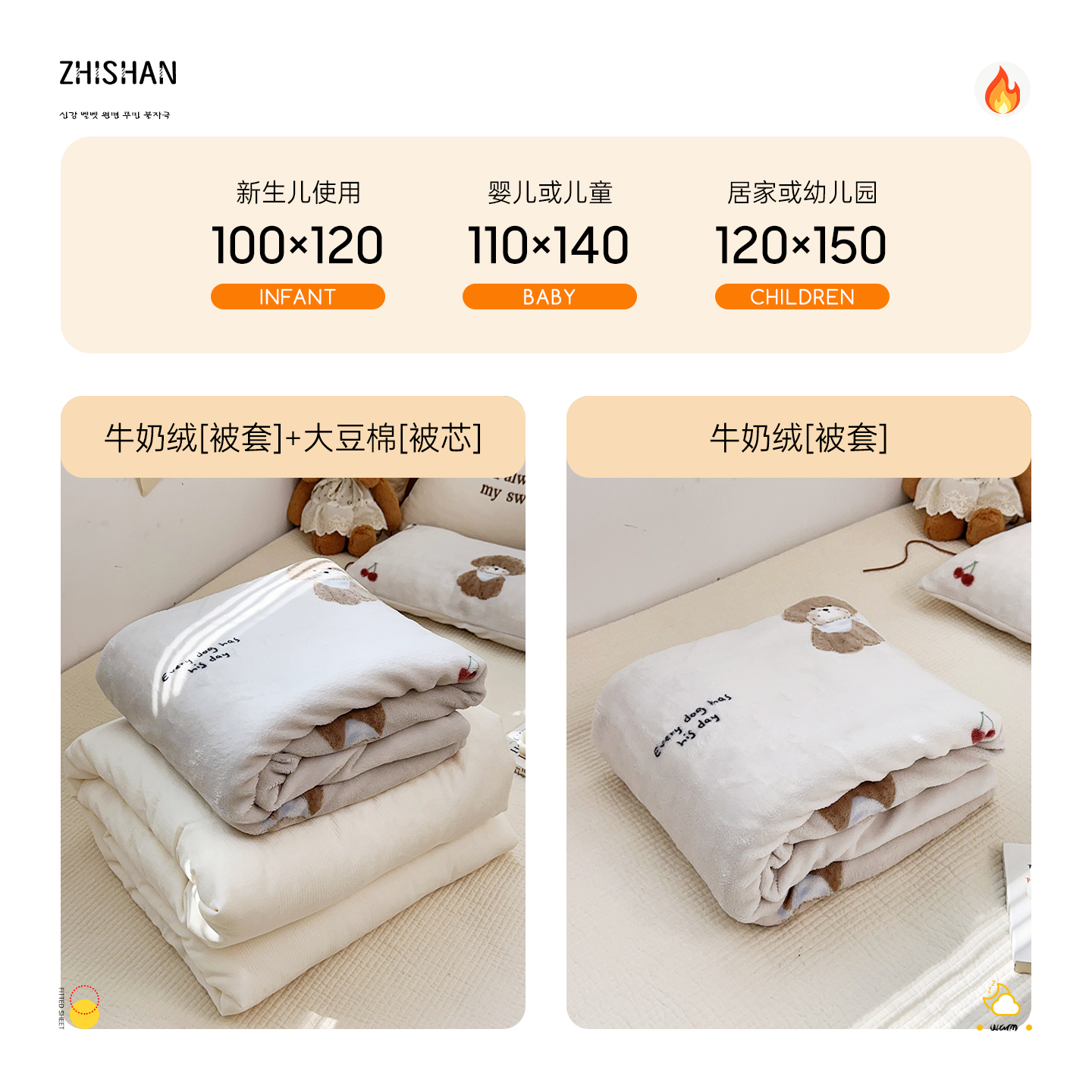 智善牛奶绒秋冬婴儿被套加绒A类