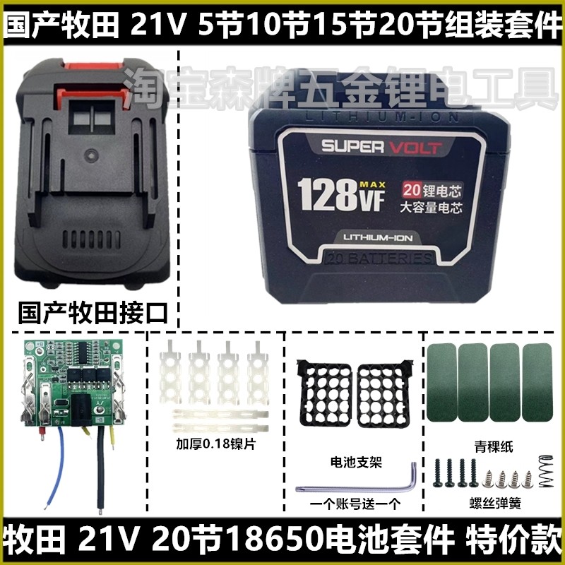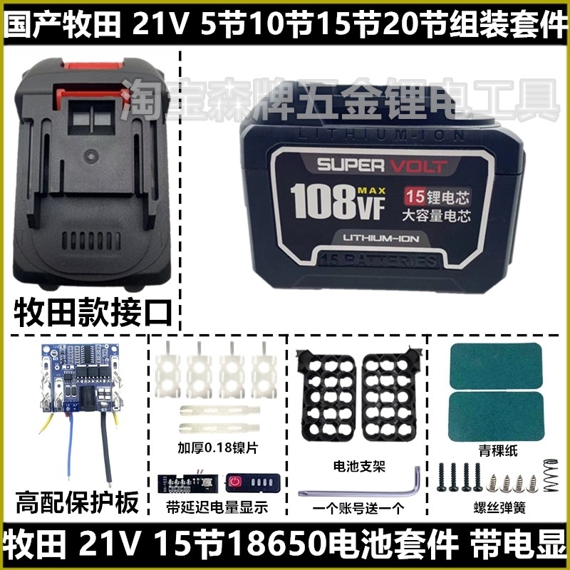 国产牧田款21V电动扳手电锤电池保护板外壳组装套件红松富格通用