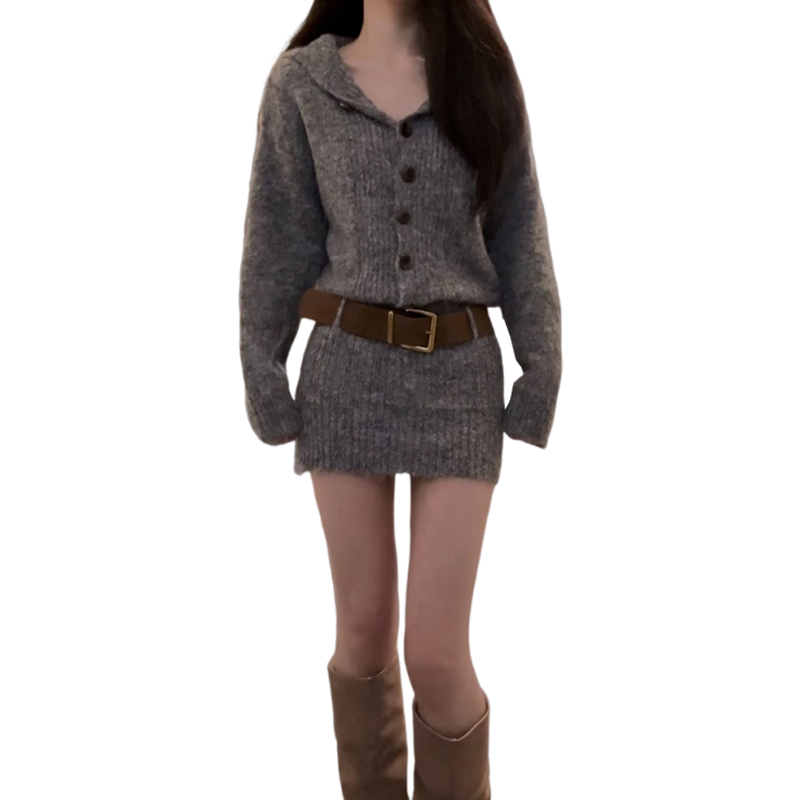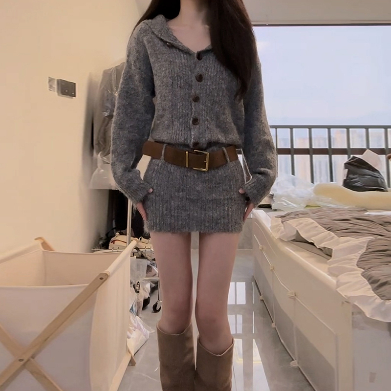 灰色针织连衣裙子女秋冬季大衣内搭包臀短裙早春装女款2025年新款