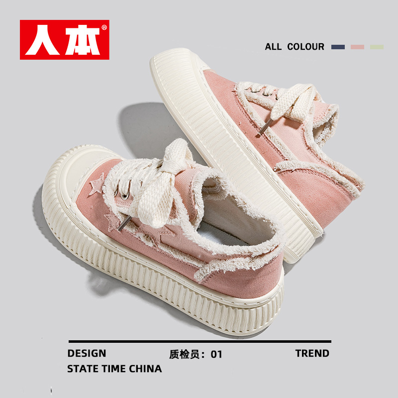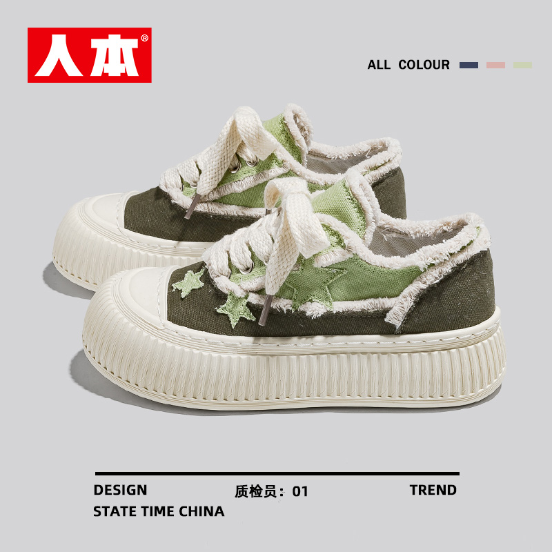 人本小白鞋女鞋厚底2025新款春季百搭学院休闲鞋潮流轻便小众板鞋