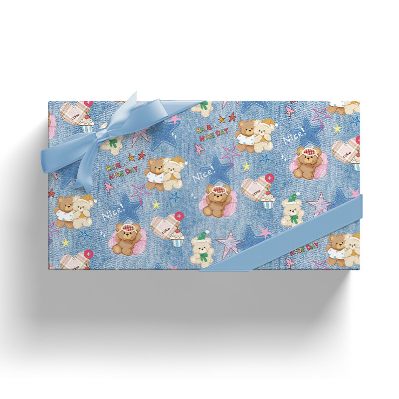 ISUKA一树家|布帕小熊可爱蓝色礼物包装纸大尺寸送男女生朋友新年情人节生日伴手礼盒礼品纸高级感包书皮纸