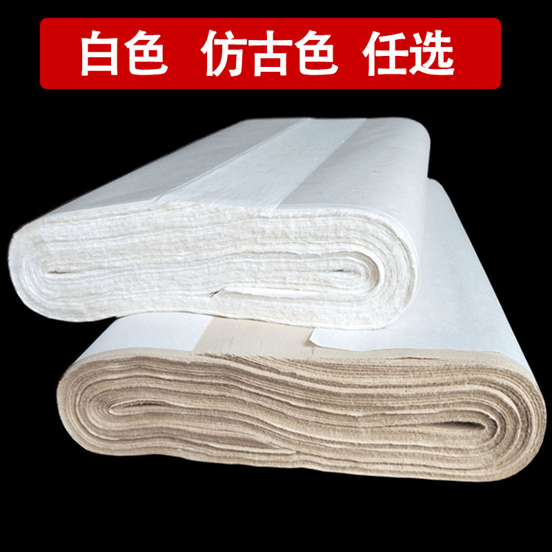 加厚仿古毛边纸纯竹浆六尺屏八尺屏半生半熟书法作品练习专用宣纸