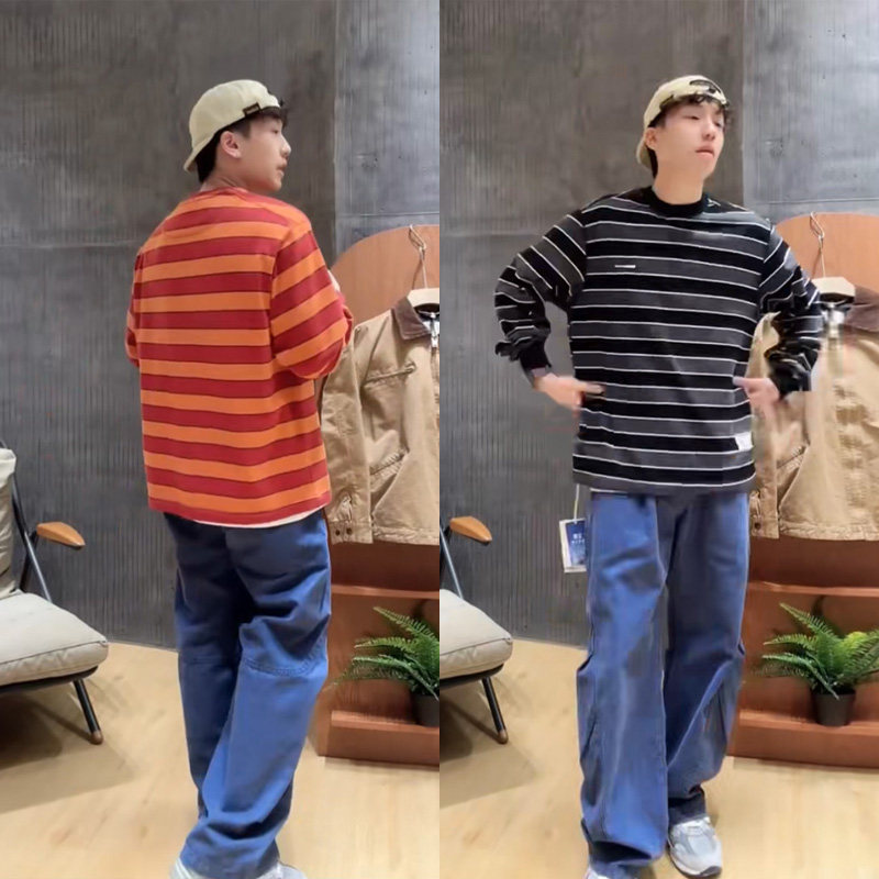 350g重磅宽条纹纯棉长袖t恤