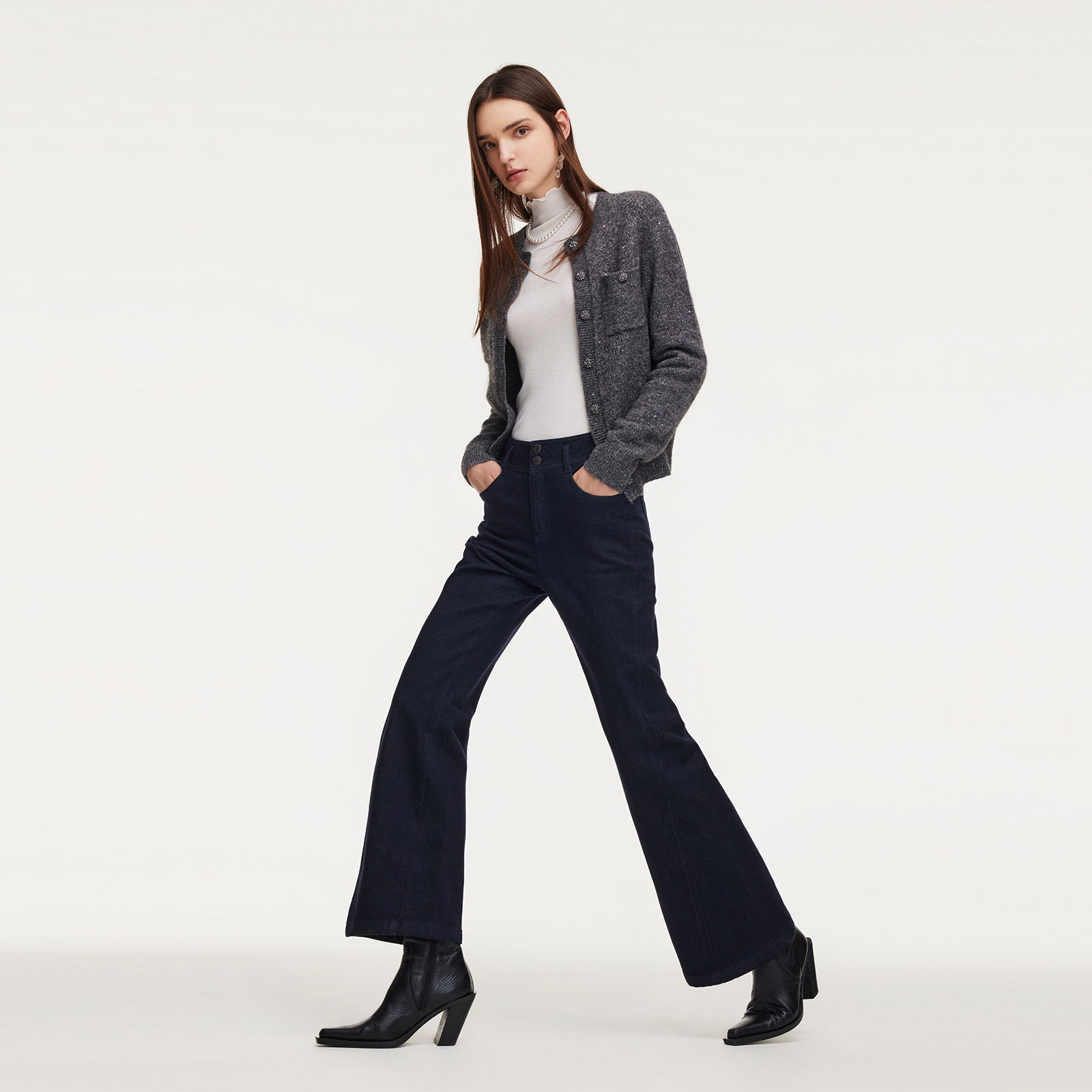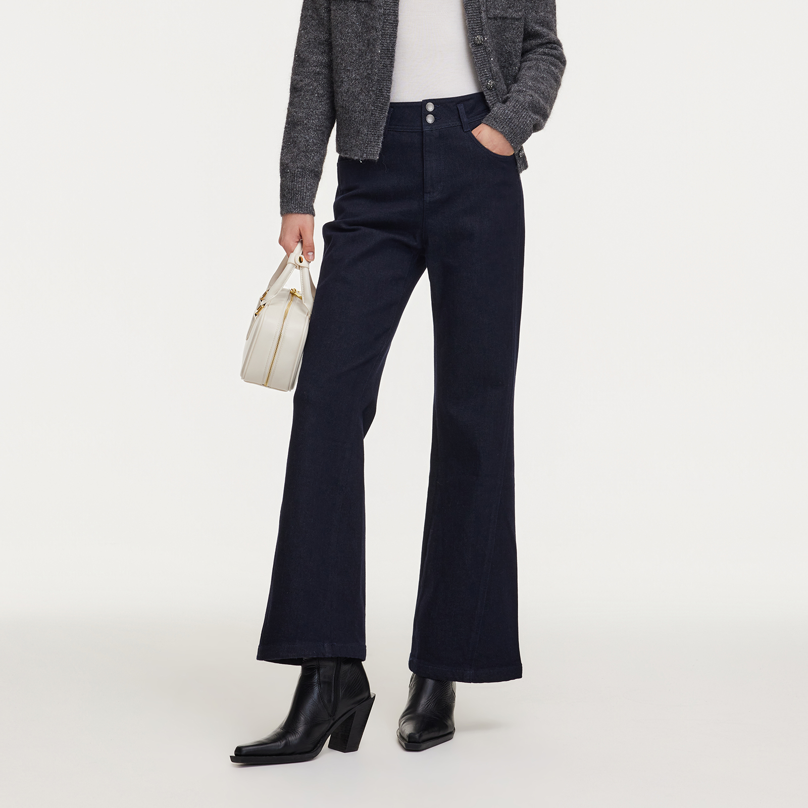 歌莉娅冬季新品牛仔微喇叭裤1EDJCD130