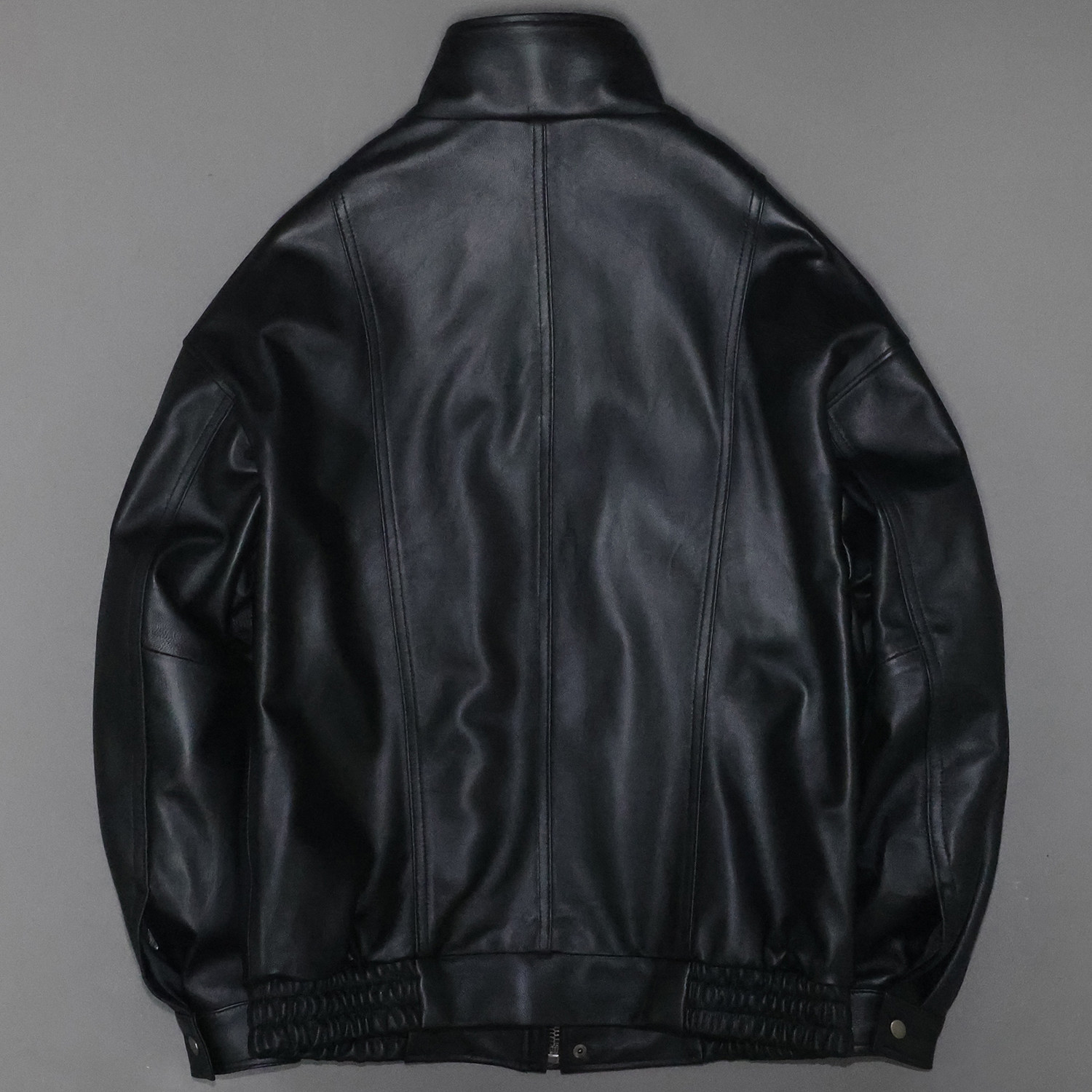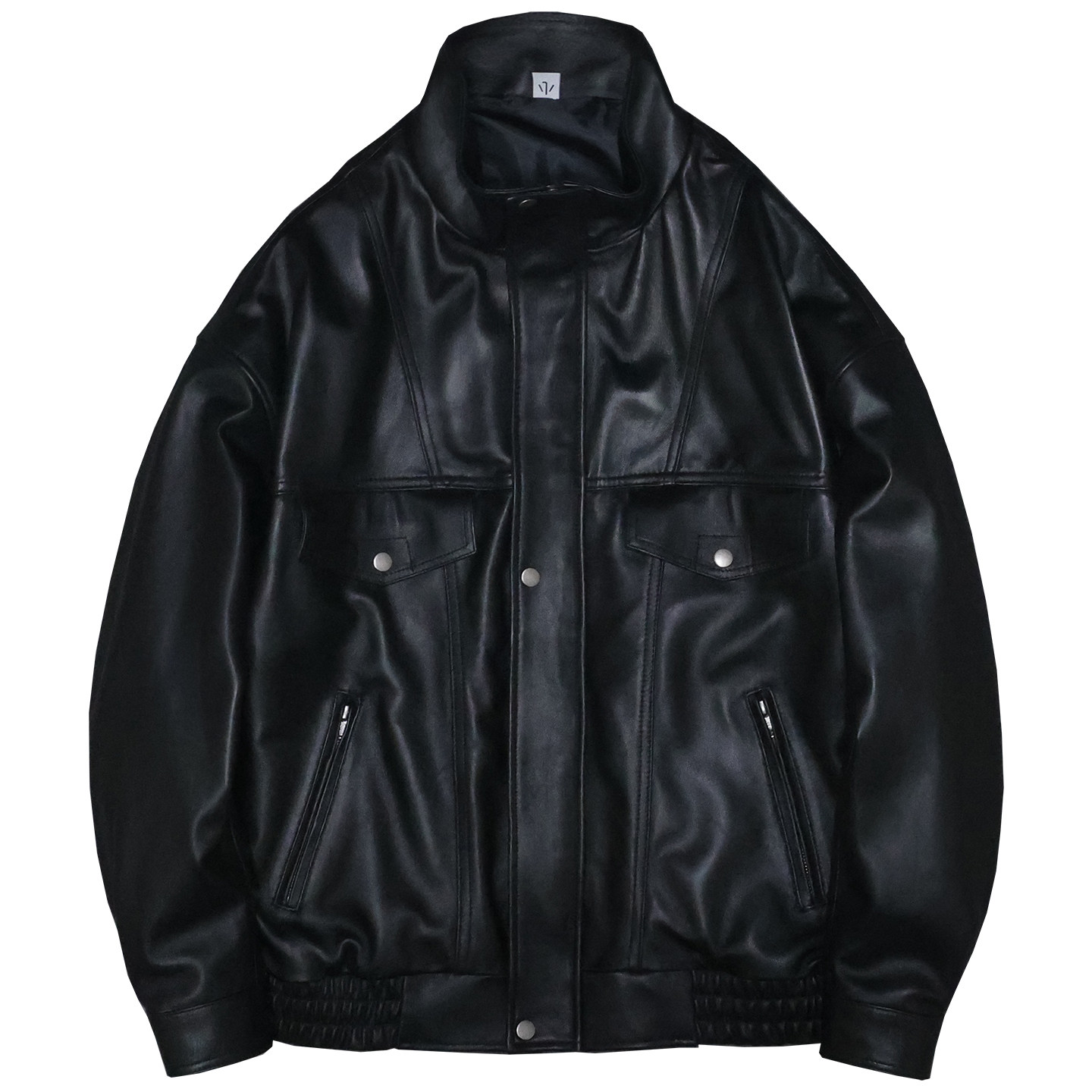廓版柔软头层绵羊真皮皮衣男女青年落肩休闲宽松飞行皮夹克外套隗