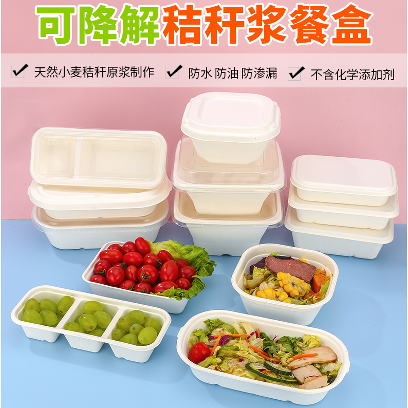 一次性白浆盒白色环保餐盒外卖打包盒长方形纸质快餐盒轻食便当盒