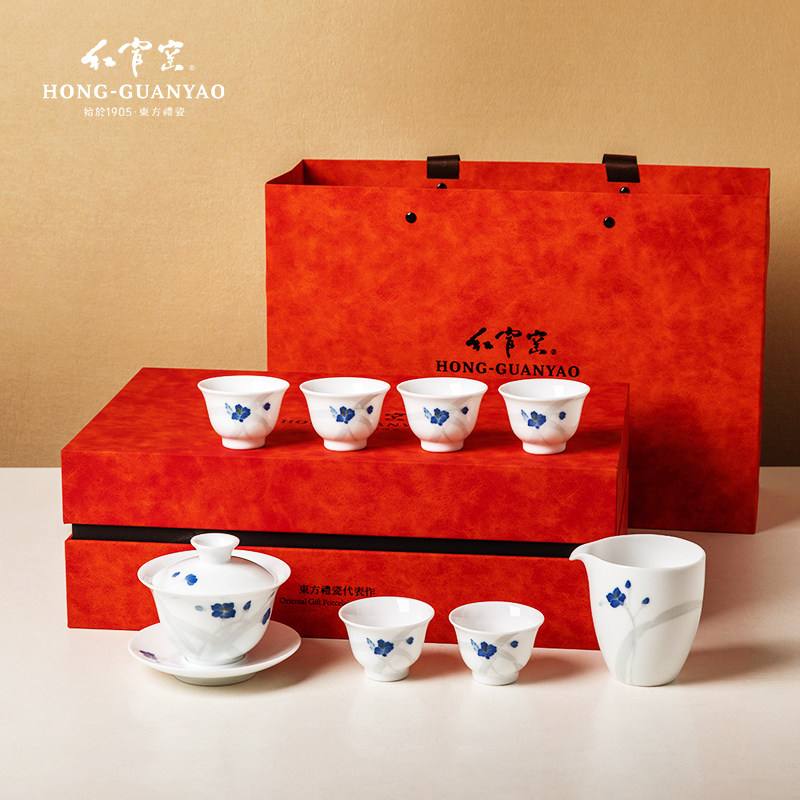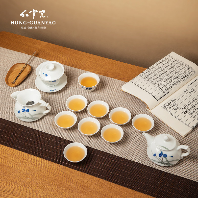 红官窑新款功夫茶具套装家用陶瓷茶壶茶杯醴陵釉下彩礼盒兰谷幽香