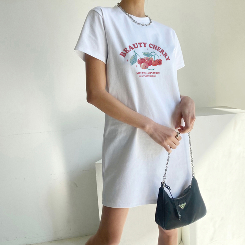 夏季中长款白色短袖t恤裙女遮屁股纯棉设计感小众宽松显瘦连衣裙