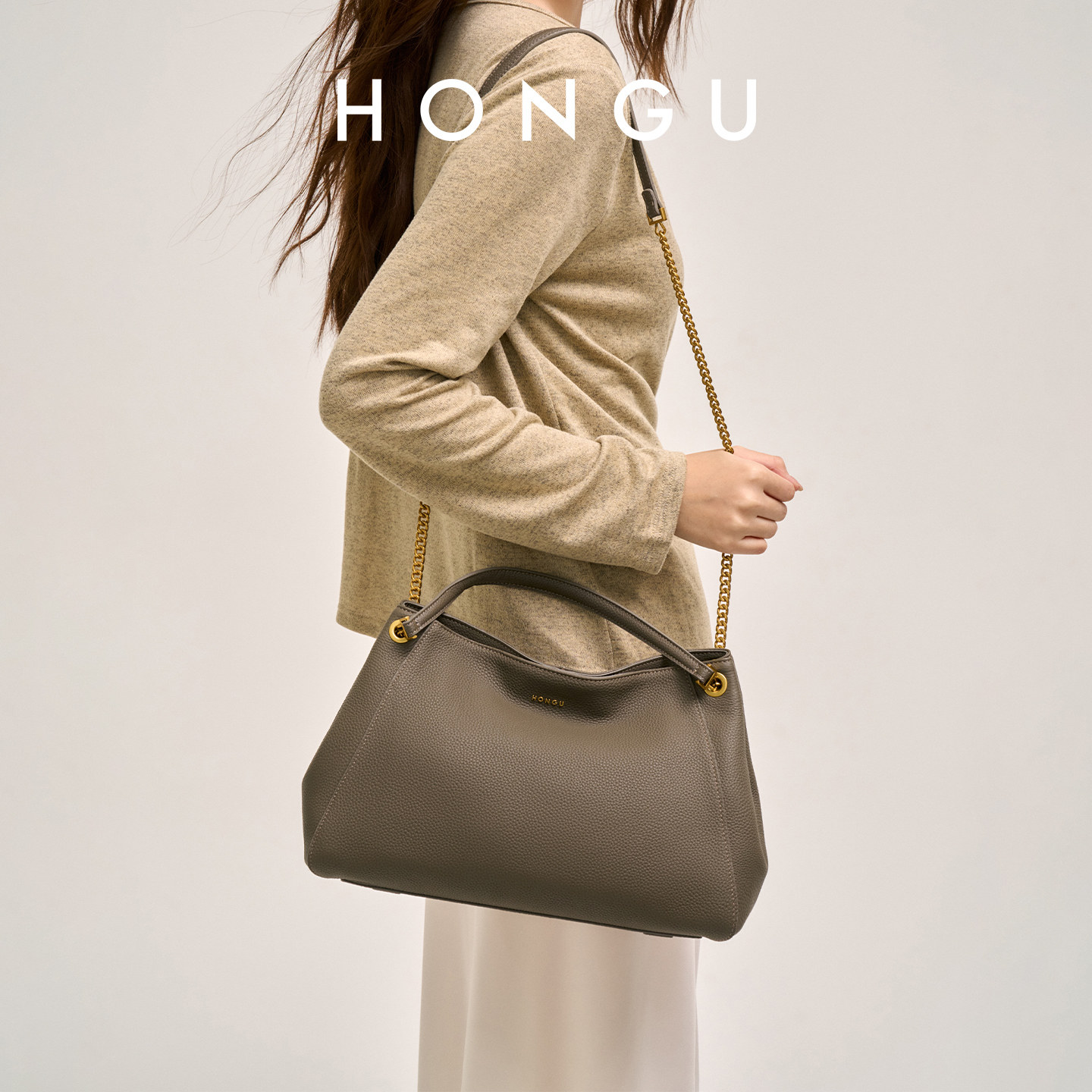HONGU红谷女包2025新款真皮HOBO腋下包单肩托特包大容量H5157223