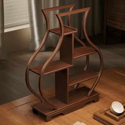 台式桌面博古架实木新中式小型多层收纳紫砂壶摆放茶叶茶杯置物架
