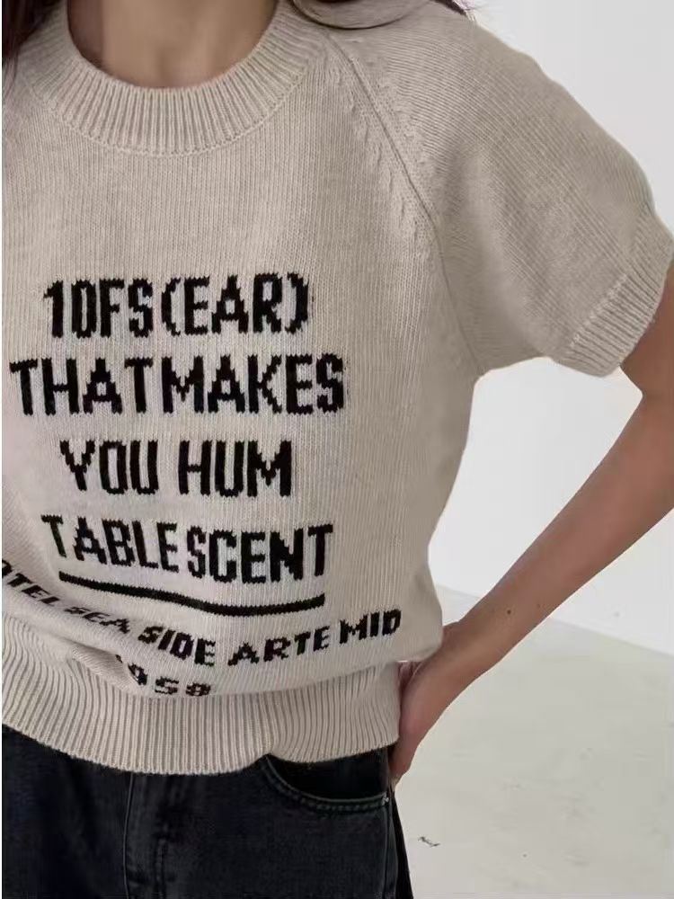 韩国东大门正品女装2025新款百搭圆领字母短袖针织衫女毛衣细软