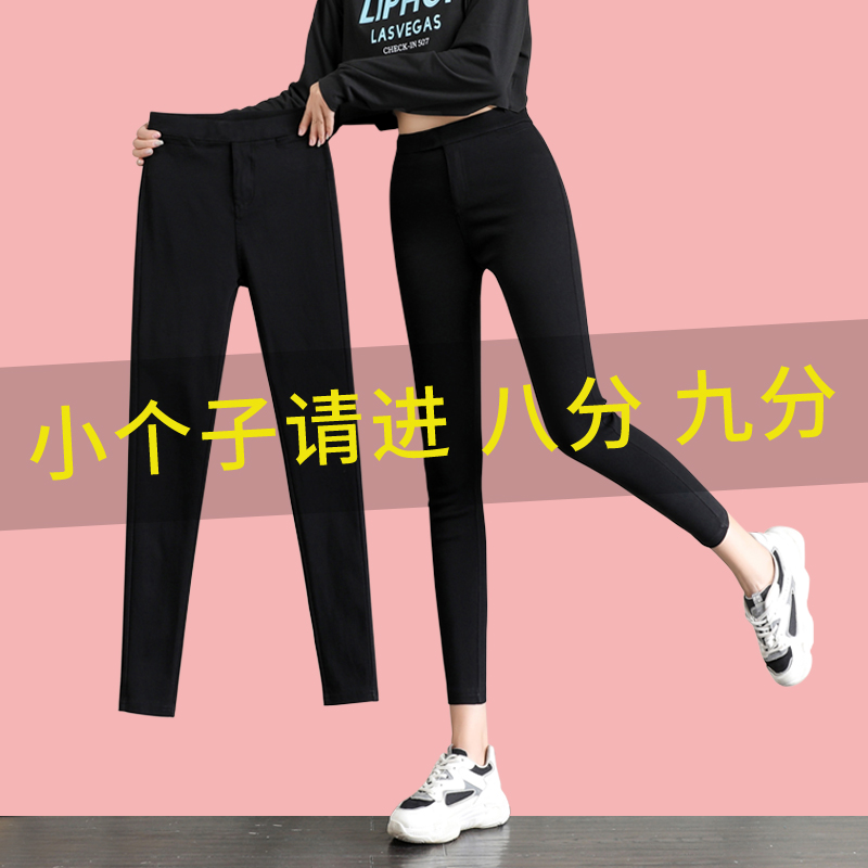 小个子打底裤女外穿七八分夏季薄款黑色高腰显瘦黑裤铅笔小脚九分