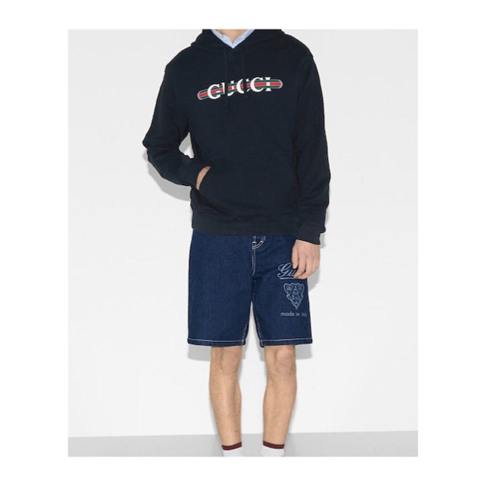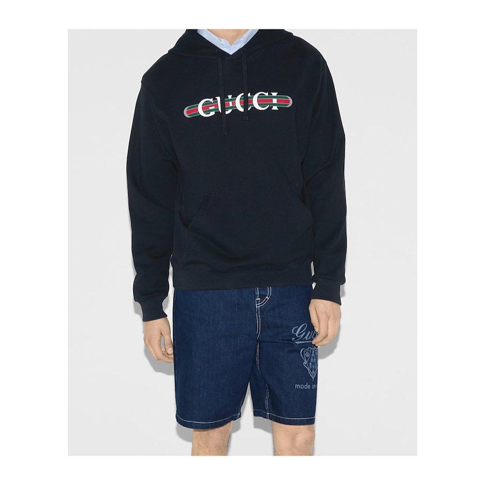 GUCCI 男士针织毛衣 788771XJG594735 AW2024 黑色 印花连帽卫衣