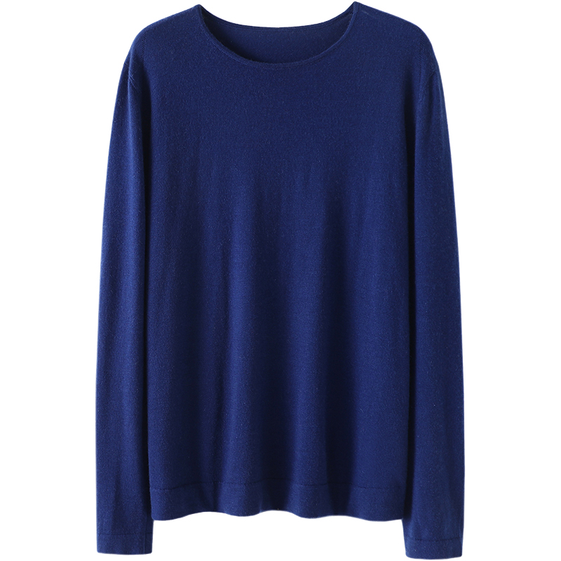 通勤四季!精纺羊绒衫女圆领套头纯羊绒毛衣针织打底衫宽松秋冬