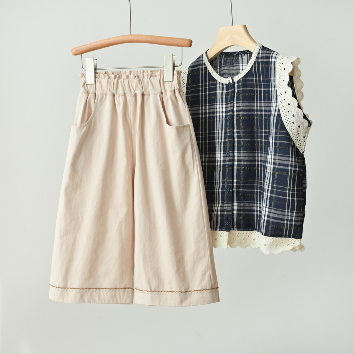 轻薄款 儿童全棉挽边七分裤 女童纯棉阔腿直筒裤 春夏款 童装