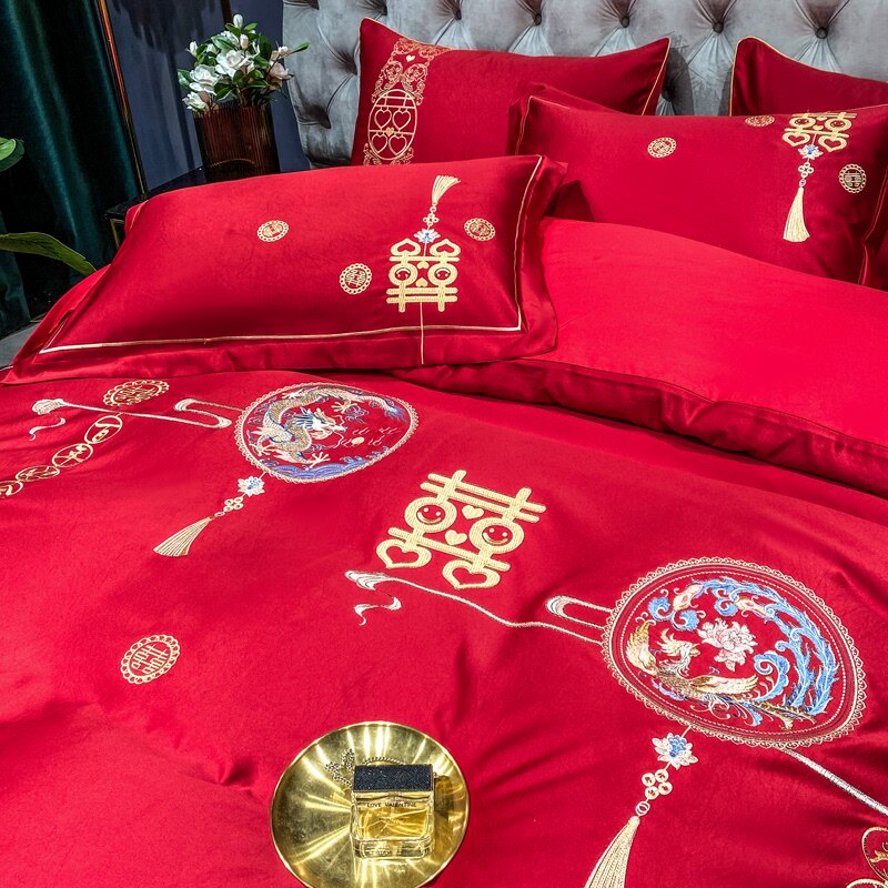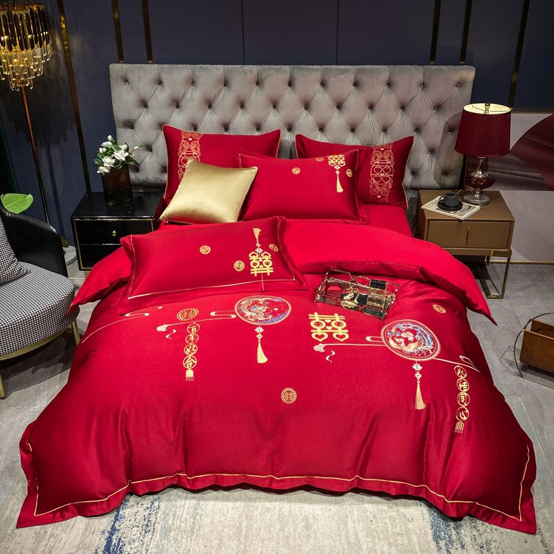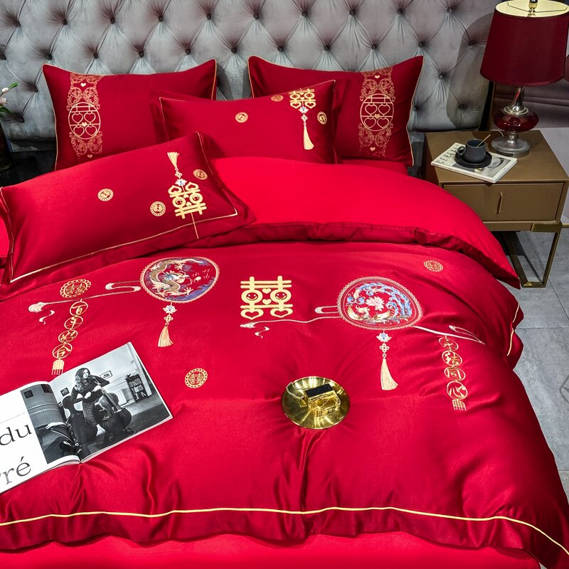高档婚庆全棉四件套纯棉被套床单红色被单被罩结婚高档床上用品秋