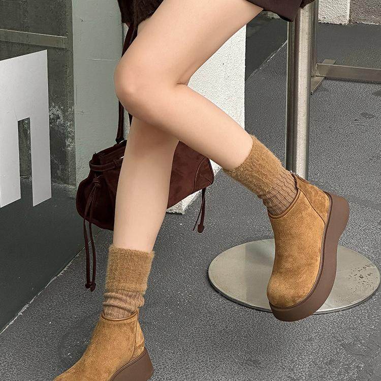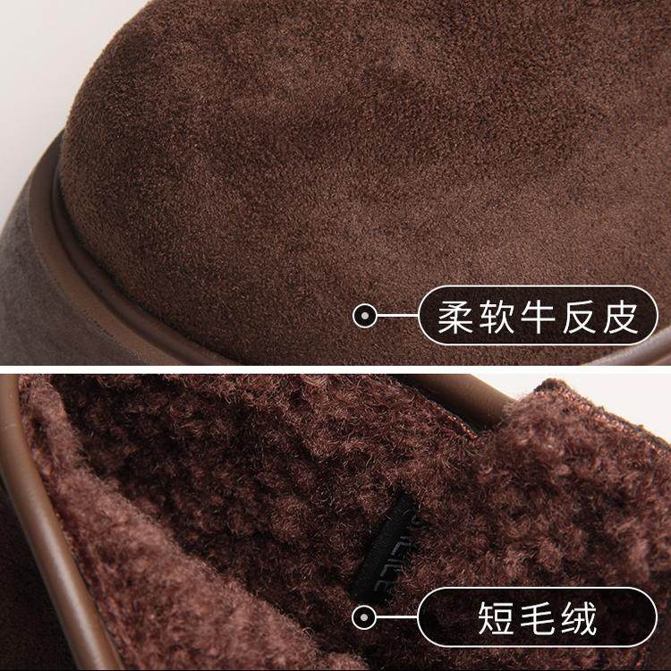 嘉俪多女鞋欧美短靴牛反绒松糕底冬季绒里后拉链圆头2025新款时尚