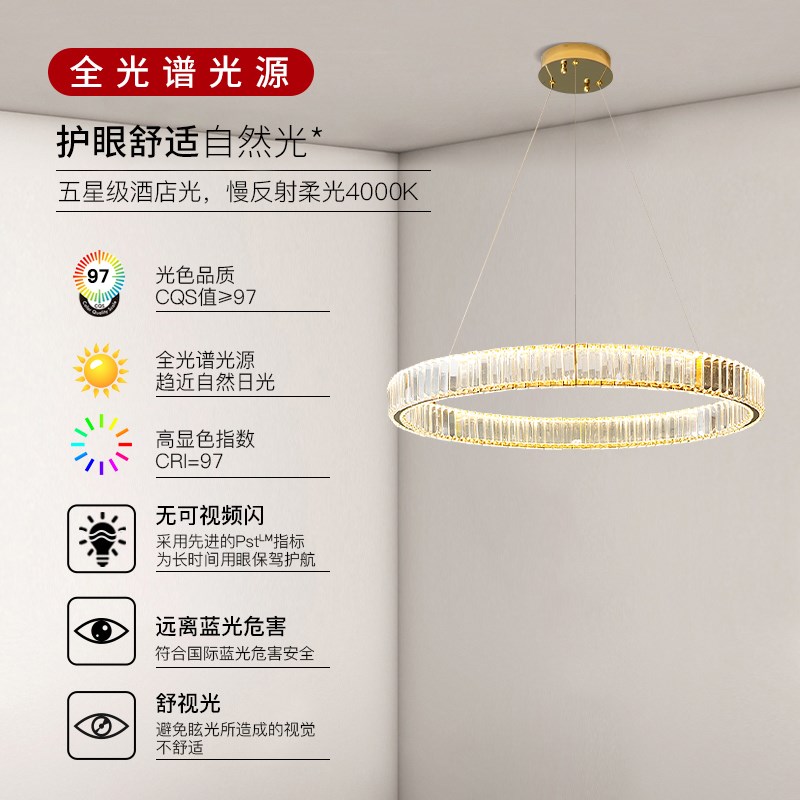 客厅吊灯水晶灯现代简约轻奢大气家用环形M全光谱主卧室餐厅吊灯