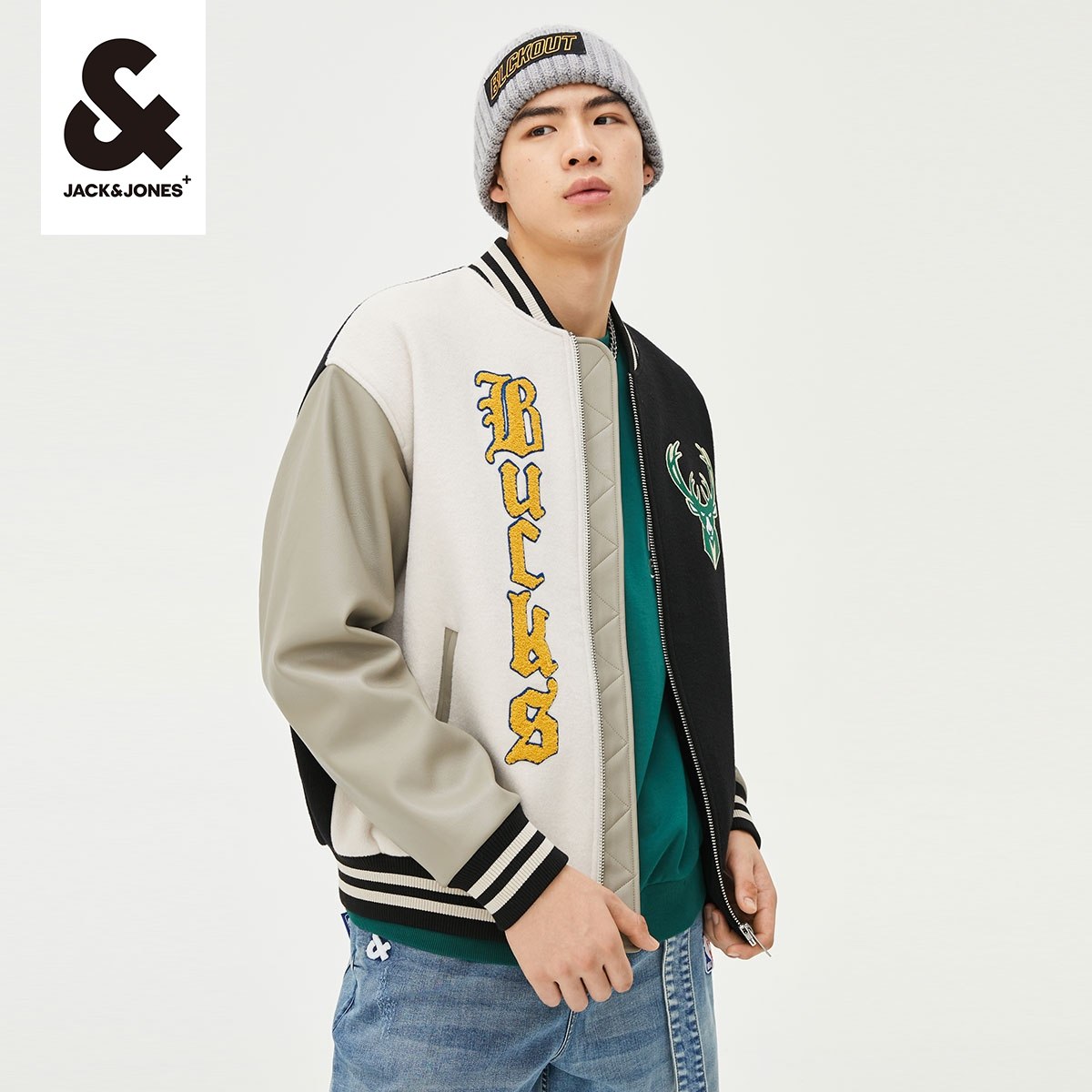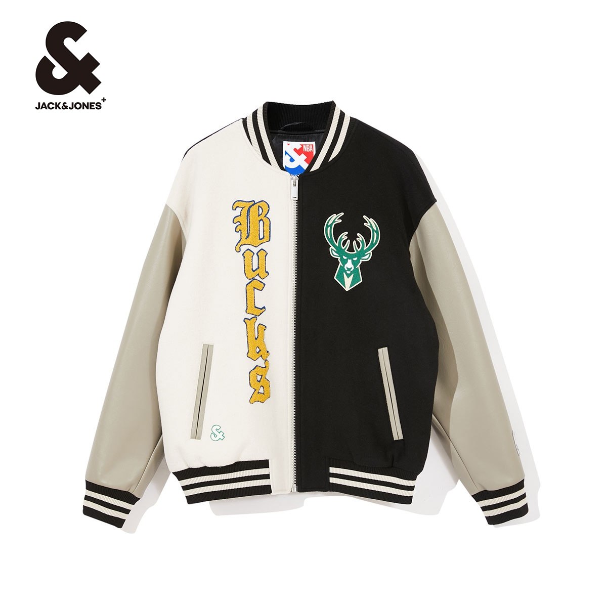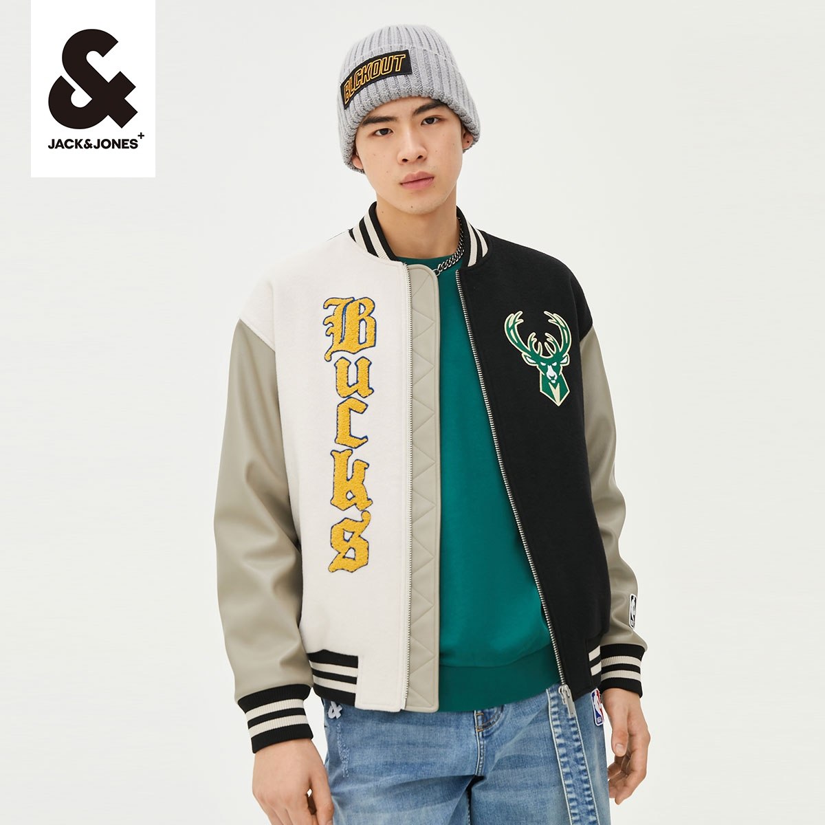 杰克琼斯outlets春NBA联名雄鹿队字母美式街头棒球服夹克外套男装