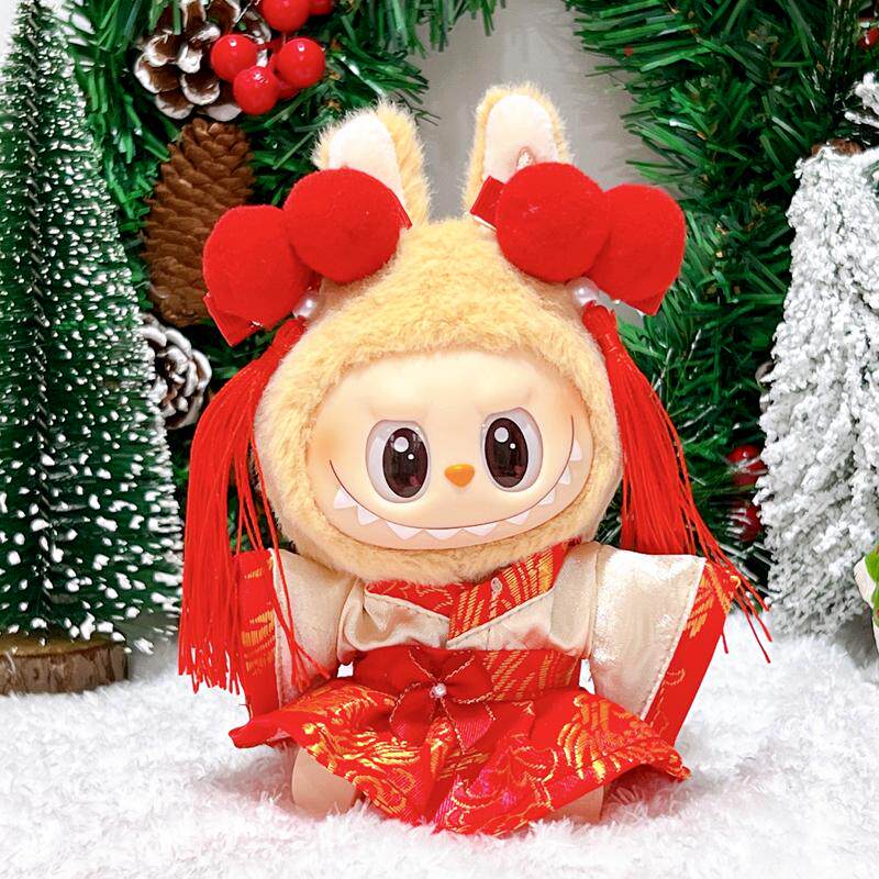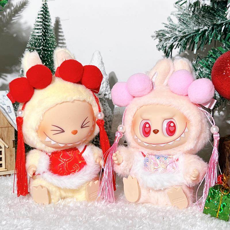 17cm娃衣labubu坐坐派对新年衣服斗篷帽子围巾换装公仔挂件配饰