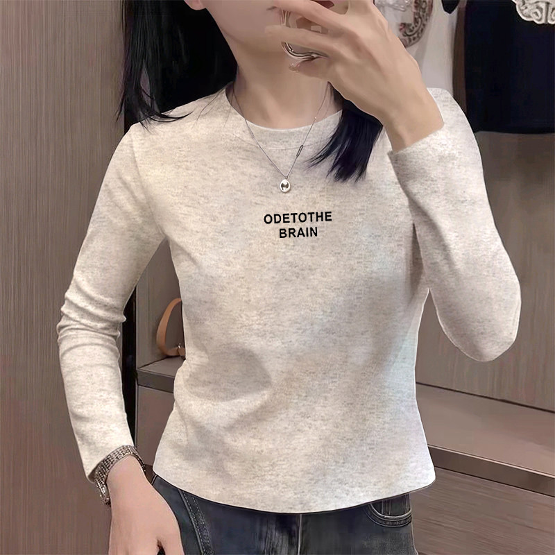 小众别致灰色正肩小个子短款长袖T恤女春秋冬新款纯棉内搭打底衫
