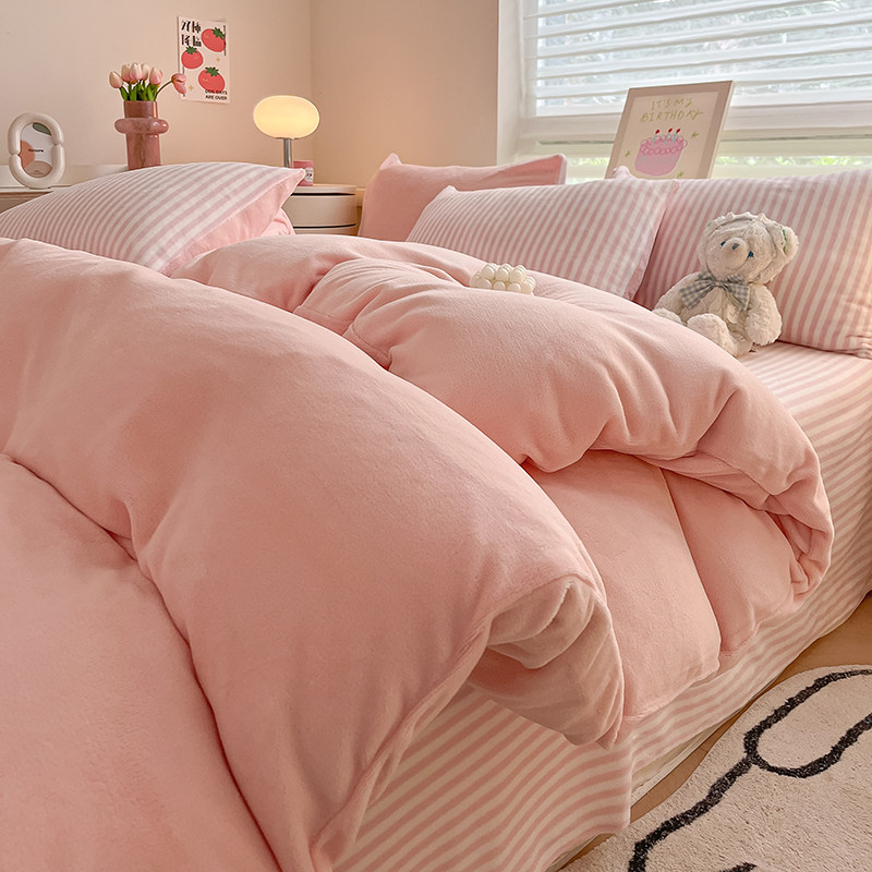 2025秋冬新款混搭四件套牛奶绒四件套珊瑚绒被套加厚保暖速热三件