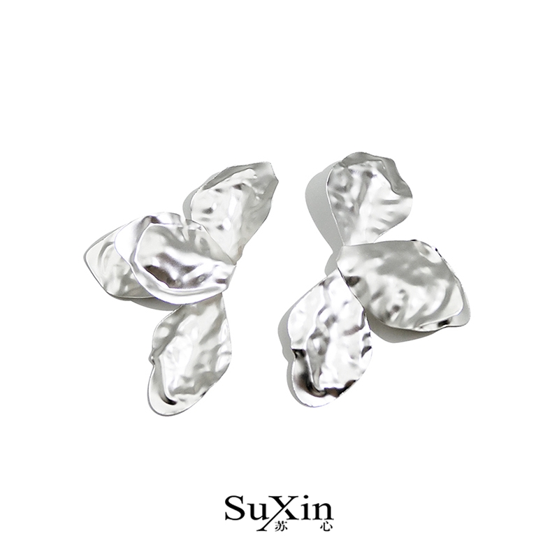 苏心饰品大牌风凹凸金色树叶花朵耳环欧美夸张不规则耳坠复古耳饰