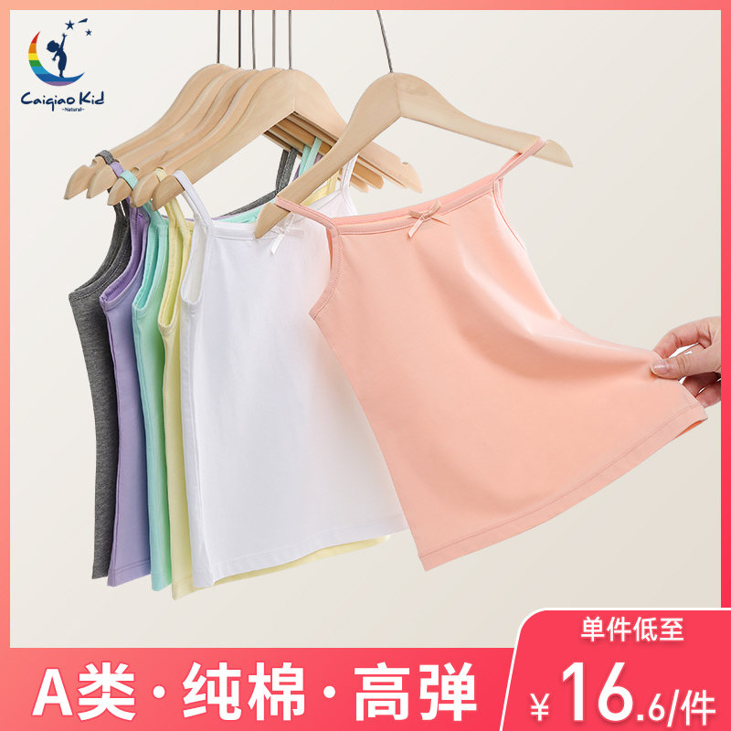 女童吊带背心内穿纯棉春秋宝宝学生发育期小女孩打底儿童粉色内衣