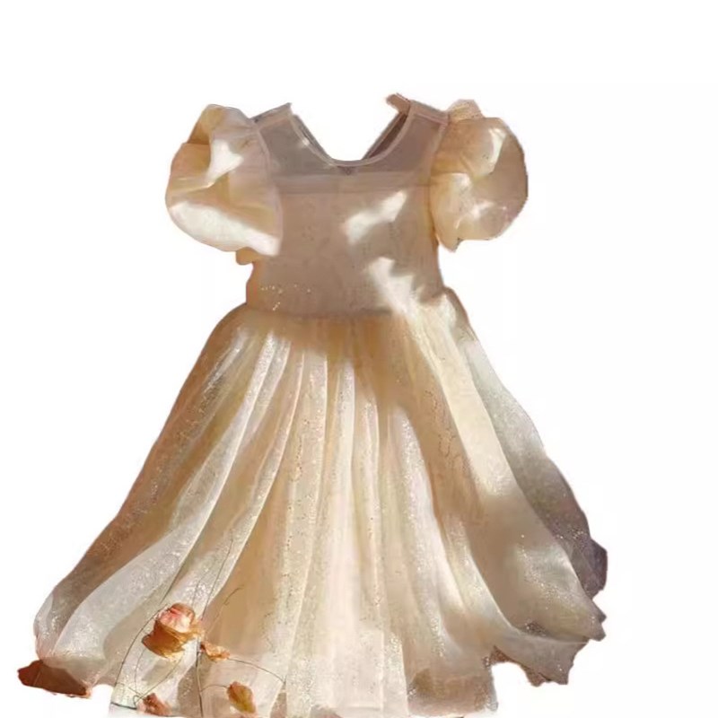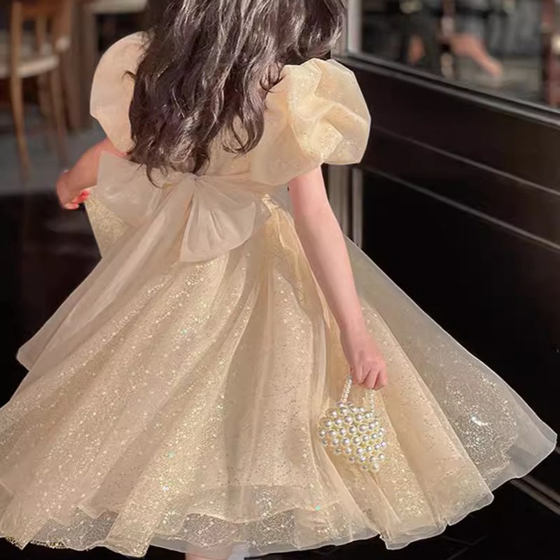 女童连衣裙香槟色i童装2024夏款儿童宝宝小女孩公主生日礼服纱裙