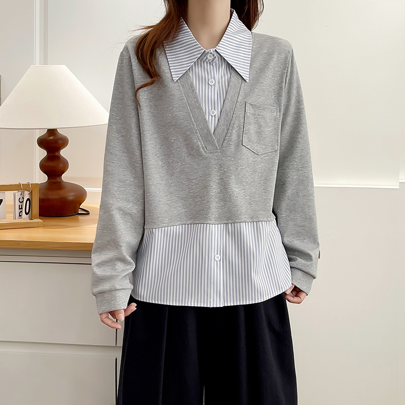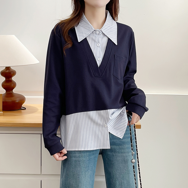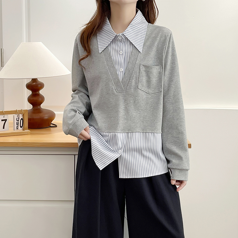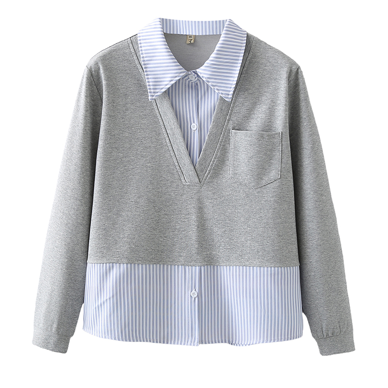 大码假两件遮肚子Polo领卫衣女秋