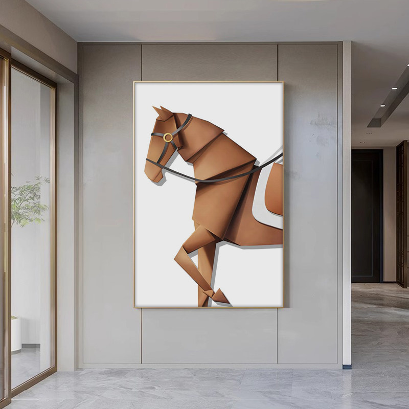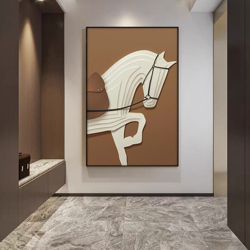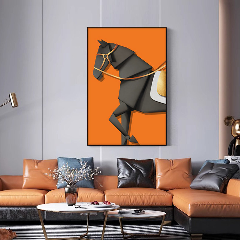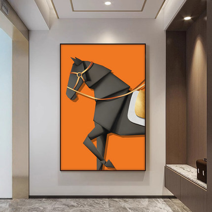 高级感轻奢马的玄关装饰画餐厅抽象爱马仕橙色客厅沙发背景墙挂画