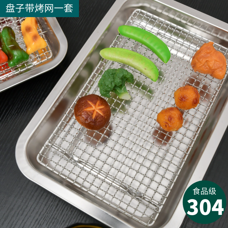 304不锈钢烧烤网长方形烧烤网架带脚冷却架面包晾网烤箱烤网用具