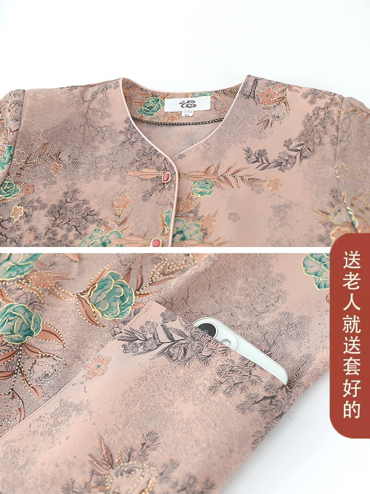 中老年人夏装女奶奶装短袖套装衬衫妈妈冰丝T恤上衣老人衣服太太