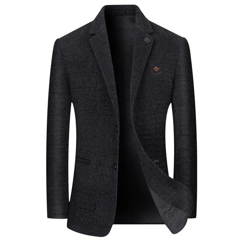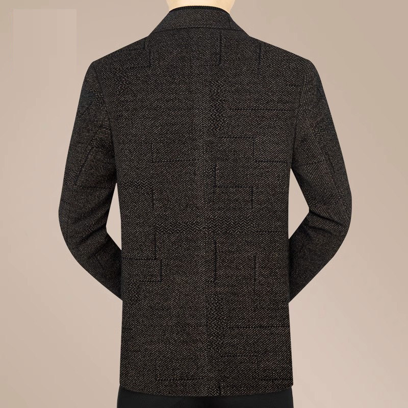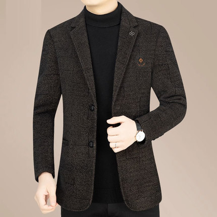 毛呢西装男新款中年男士秋冬休闲毛呢单西爸爸款西服外套男装