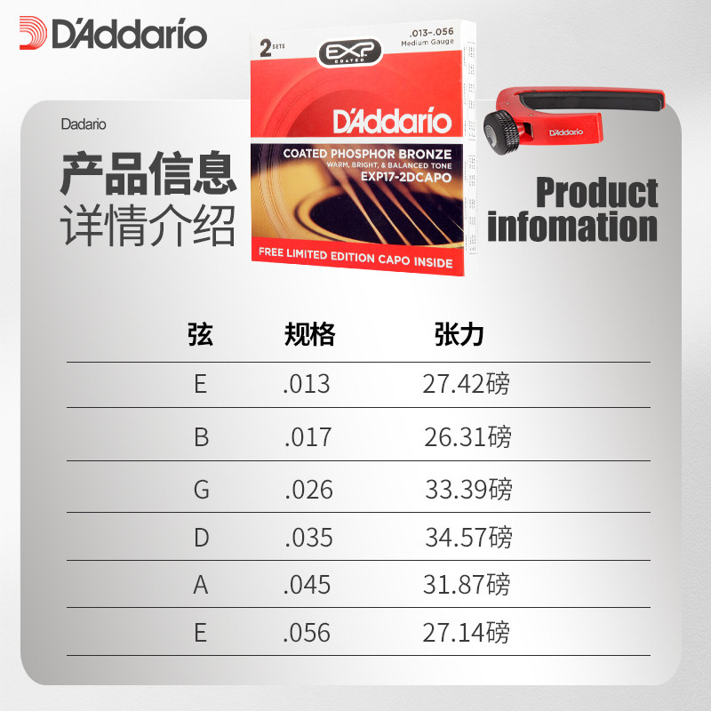 正品达达里奥EXP16 EXP17两套装内含赠变调夹磷铜民谣木吉他琴弦