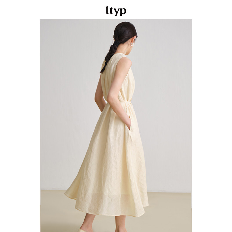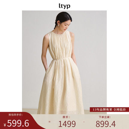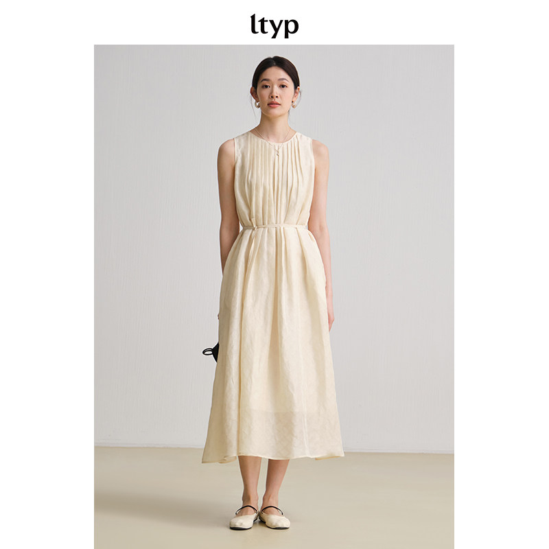 ltyp旅途原品【限量四折】真丝亚麻提花风琴褶简约优雅无袖连衣裙