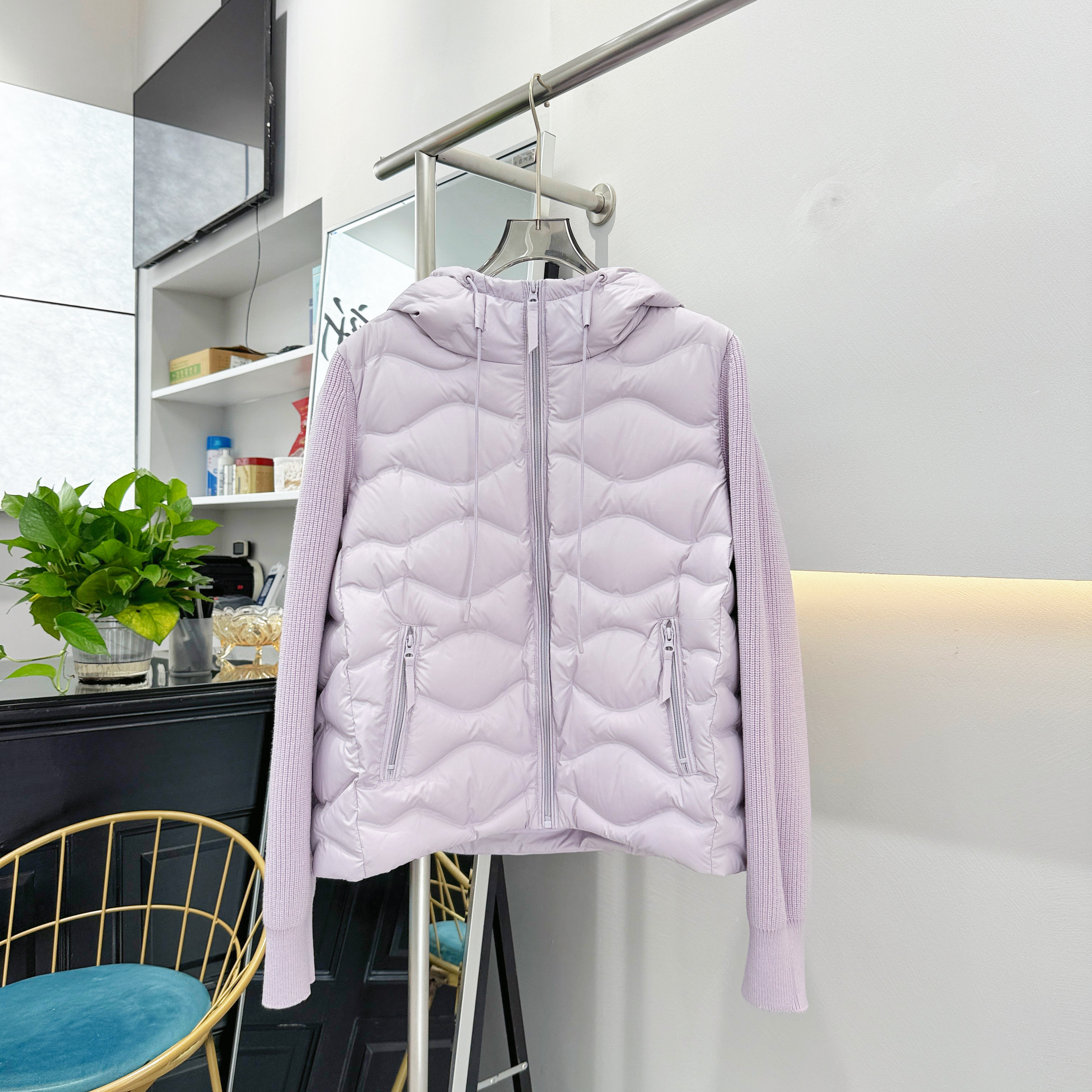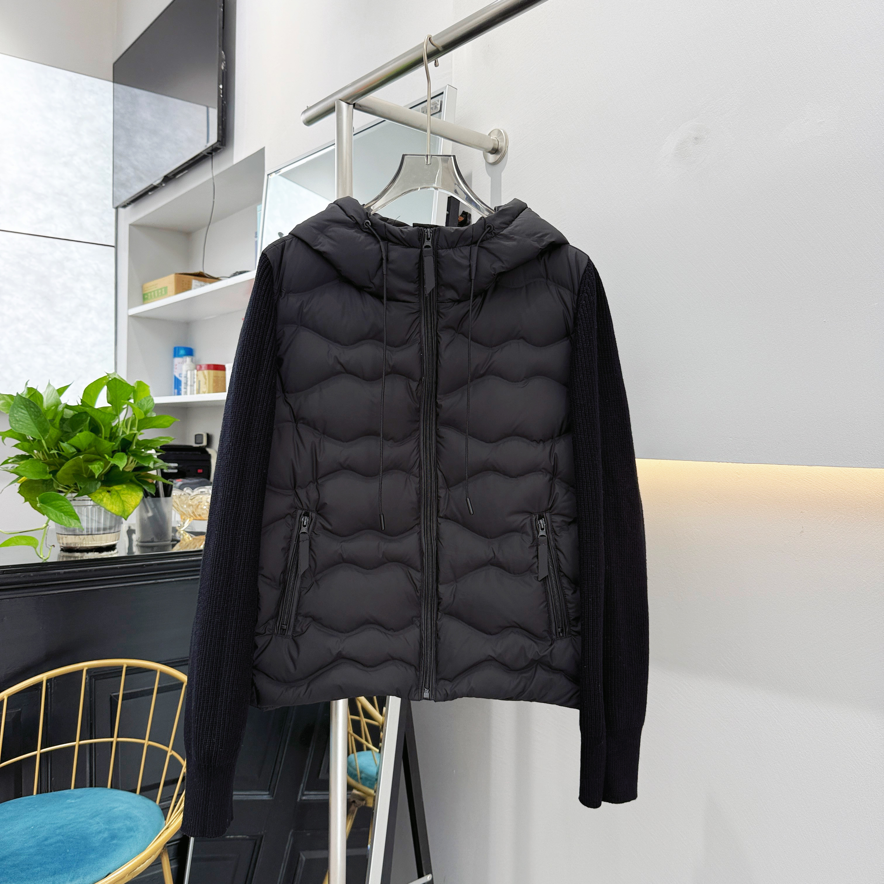 新款时尚轻薄短款羽绒服女修身连帽2025冬针织拼接白鸭绒保暖外套