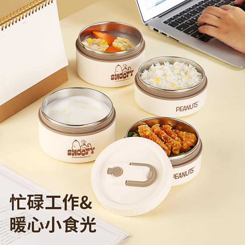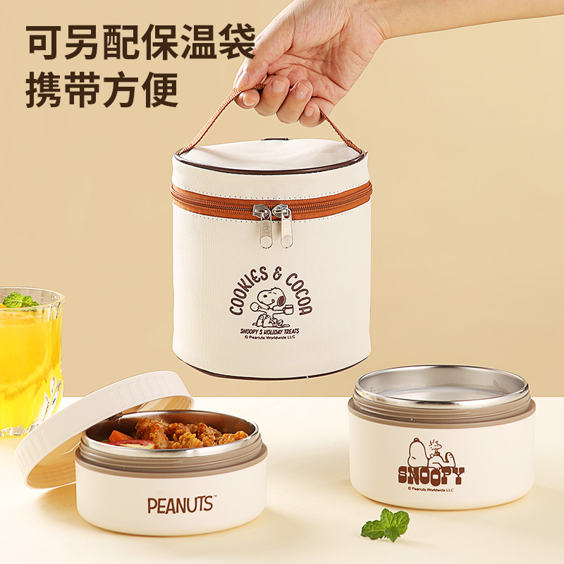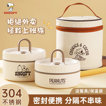 史努比保温饭盒上班族不锈钢早餐保温盒可加热日式便当盒餐盒套装