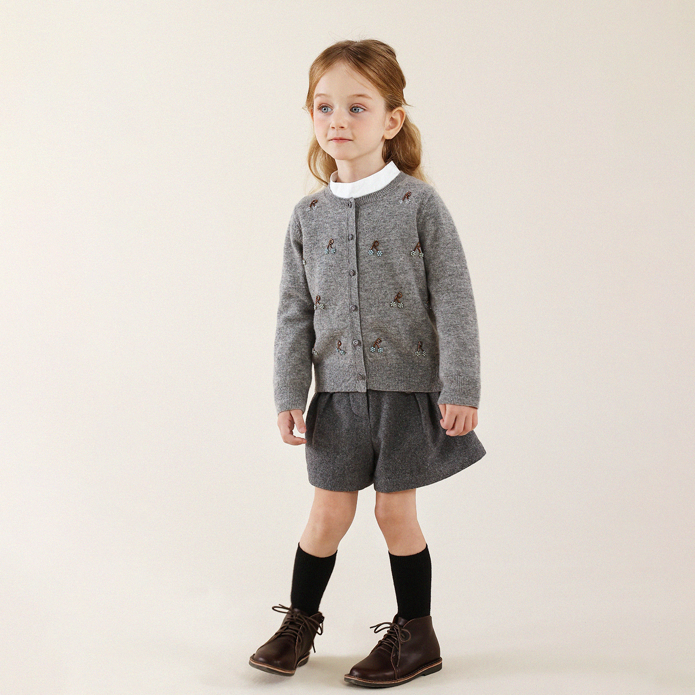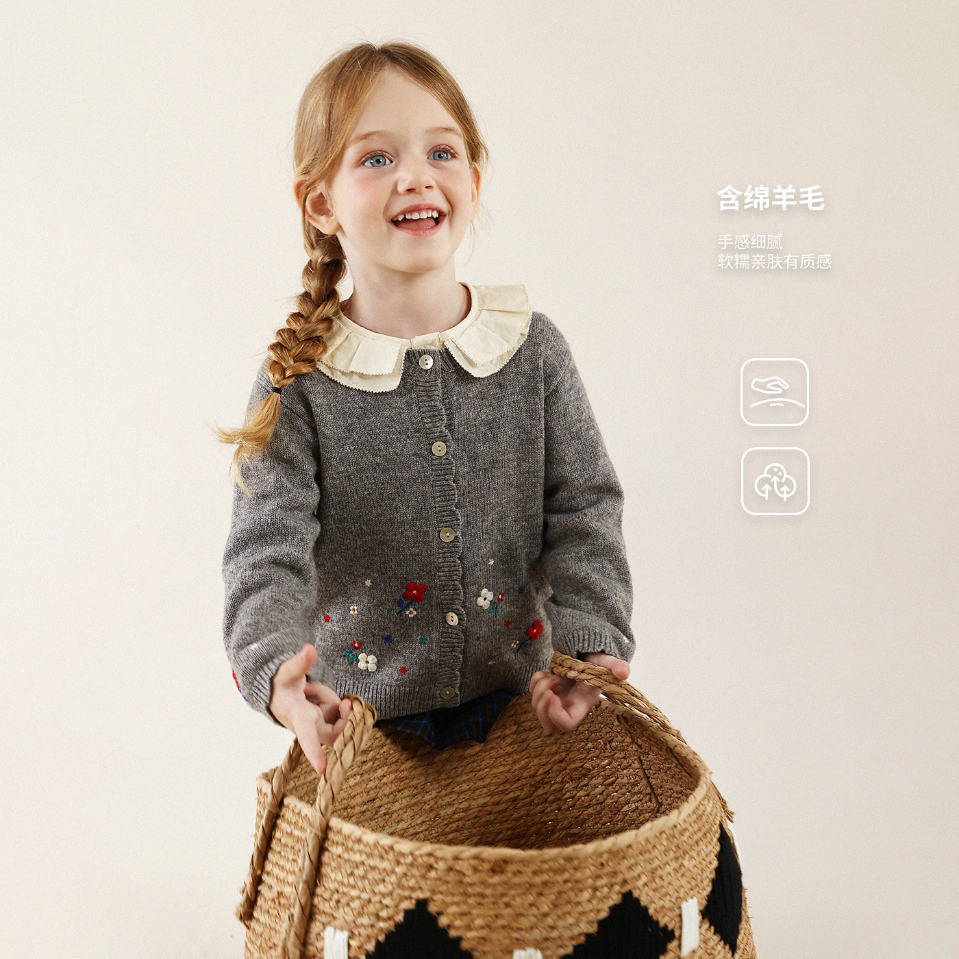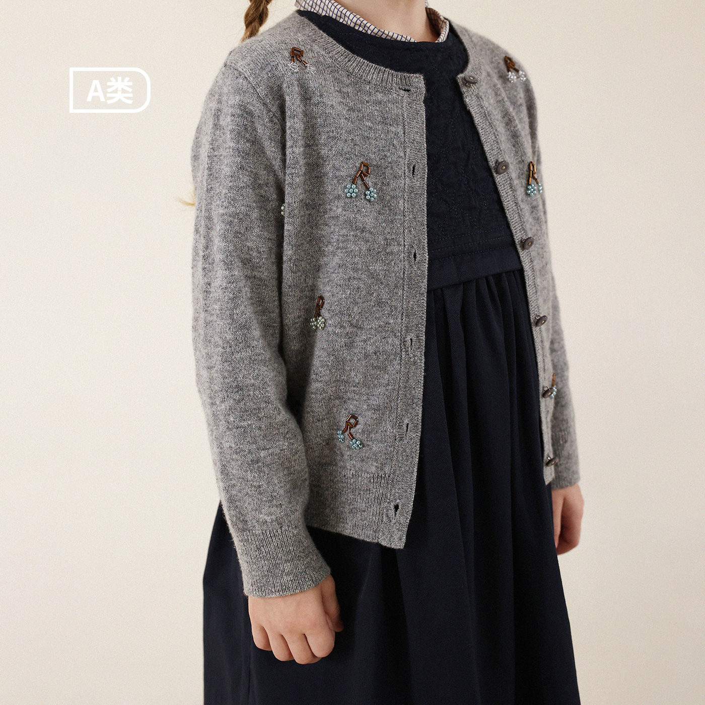 允儿妈女童秋季新款手工串珠绵羊毛针织毛衣宝宝洋气开衫女孩上衣