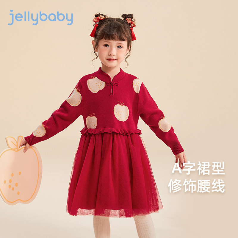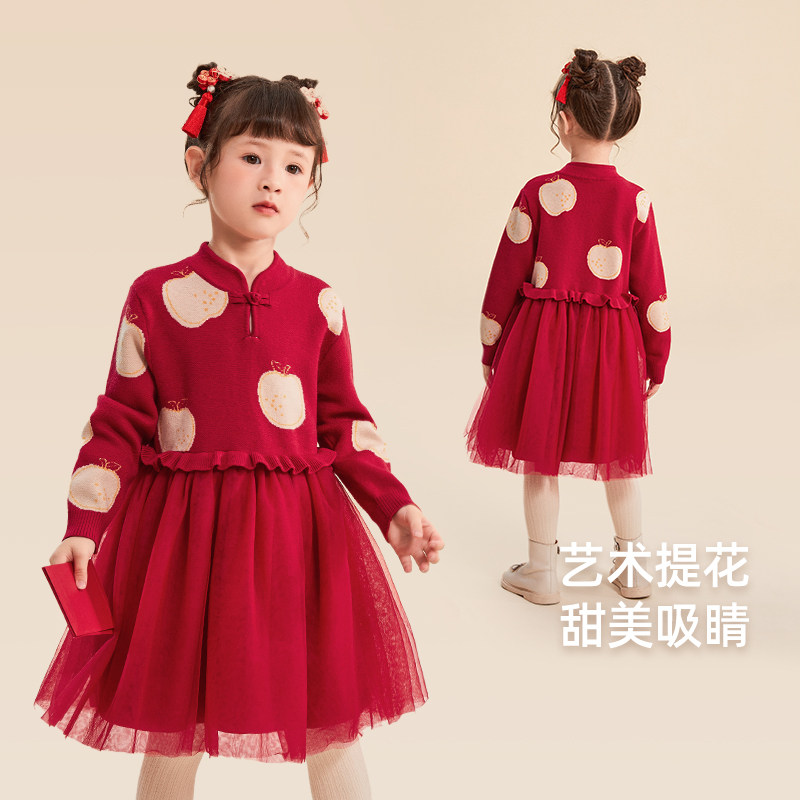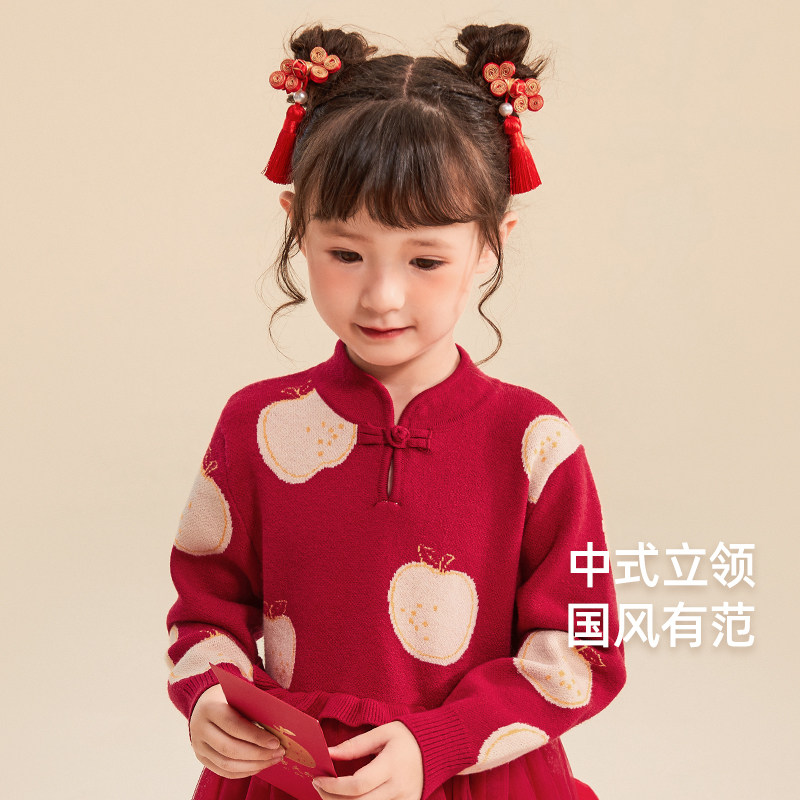 女童长袖连衣裙儿童秋冬款中式生日喜庆服装公主裙宝宝红色裙子新