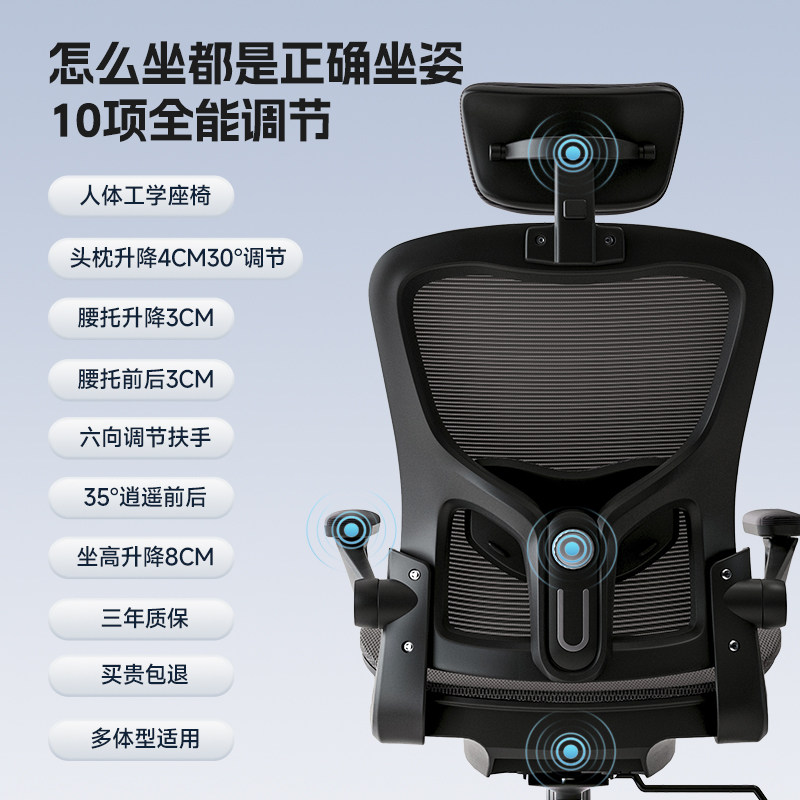 西昊人体工学电脑椅家用办公椅久坐学生学习椅宿舍电竞椅靠背转椅