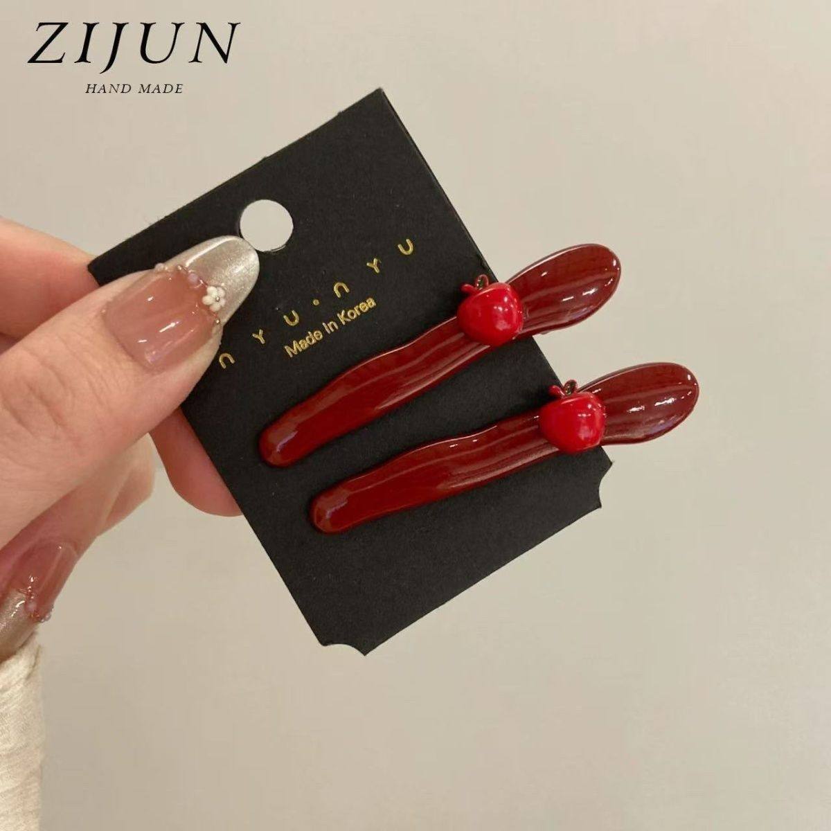 甜美红色苹果樱桃发夹边夹