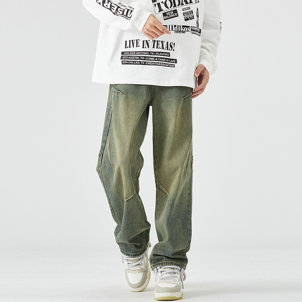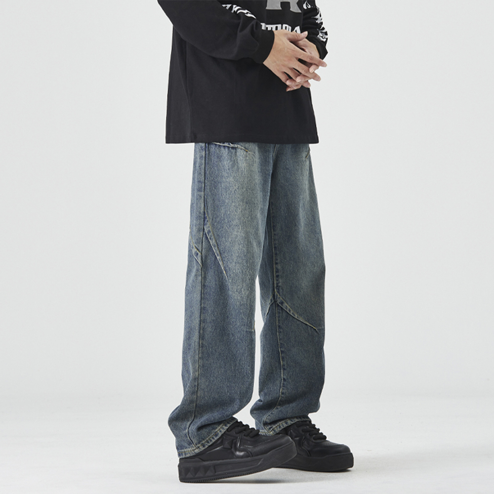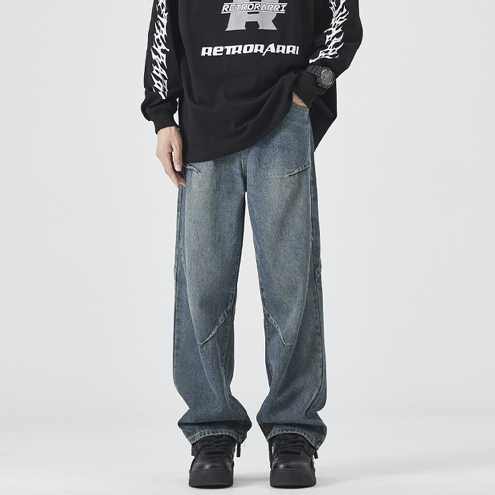吾一白春秋2025新款男生美式高街宽松牛仔裤潮流直筒男士长裤子
