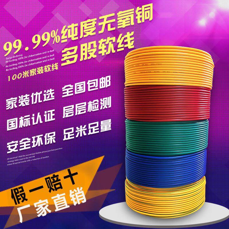 国标电线BVR2.5/4平方铜线10单芯多股1.5软线6家装家用纯铜芯电缆