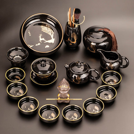 乌金釉茶具套装家用客厅陶瓷建盏茶杯盖碗泡茶壶小套轻奢高档喝茶