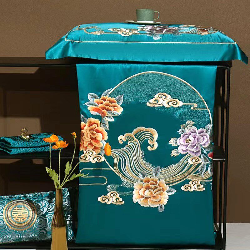 高档奢华高级感真丝棉中式花卉刺绣红色结婚庆陪嫁被套床单四件套