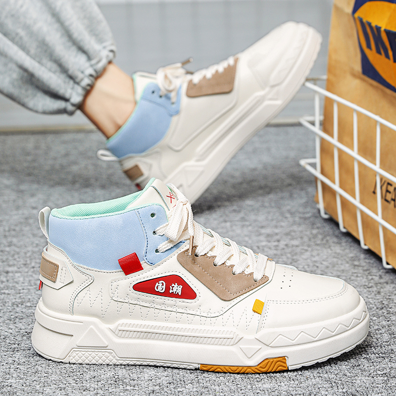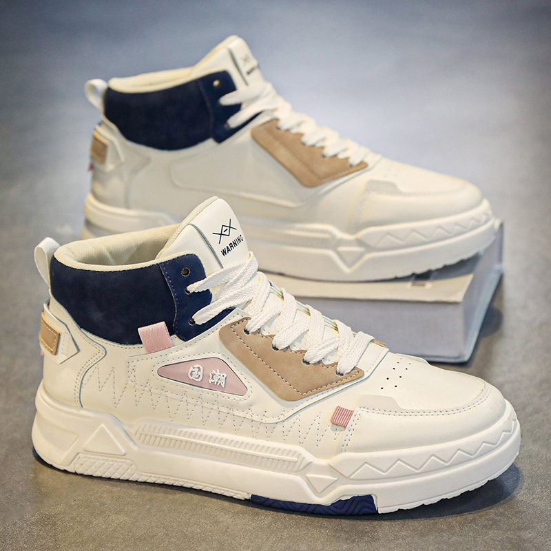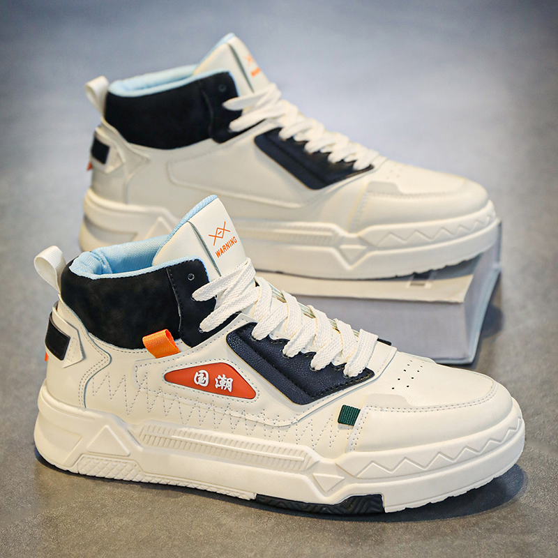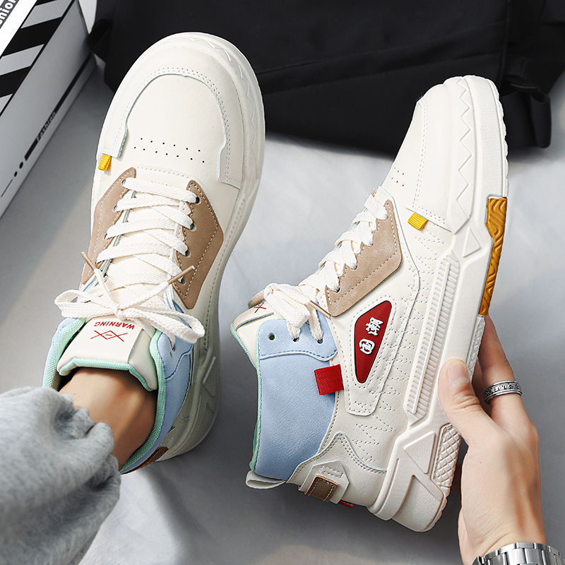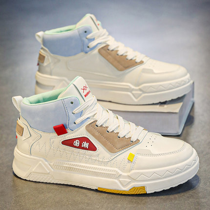 男鞋2025新款秋季潮牌休闲百搭高帮板鞋皮面防水韩版增高运动潮鞋