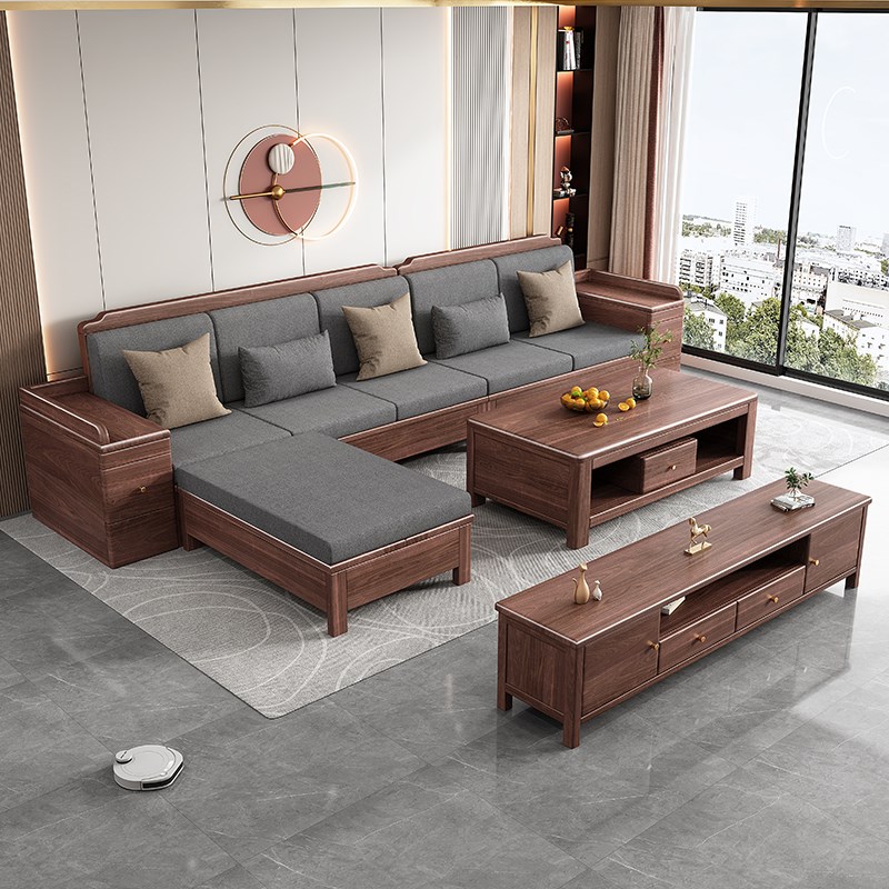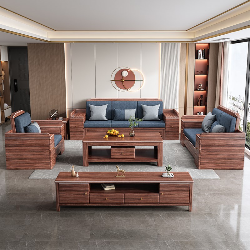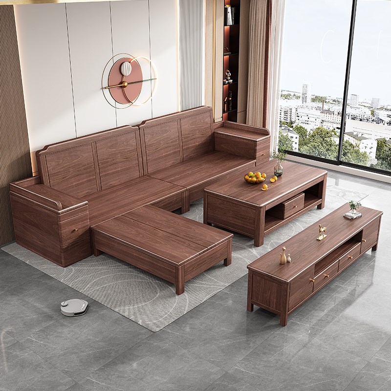 新中式南美黑胡桃木全实木沙发客厅现代简约高箱储物2025新款家具
