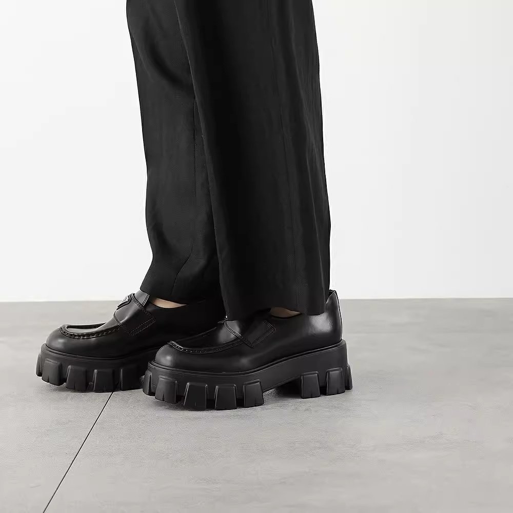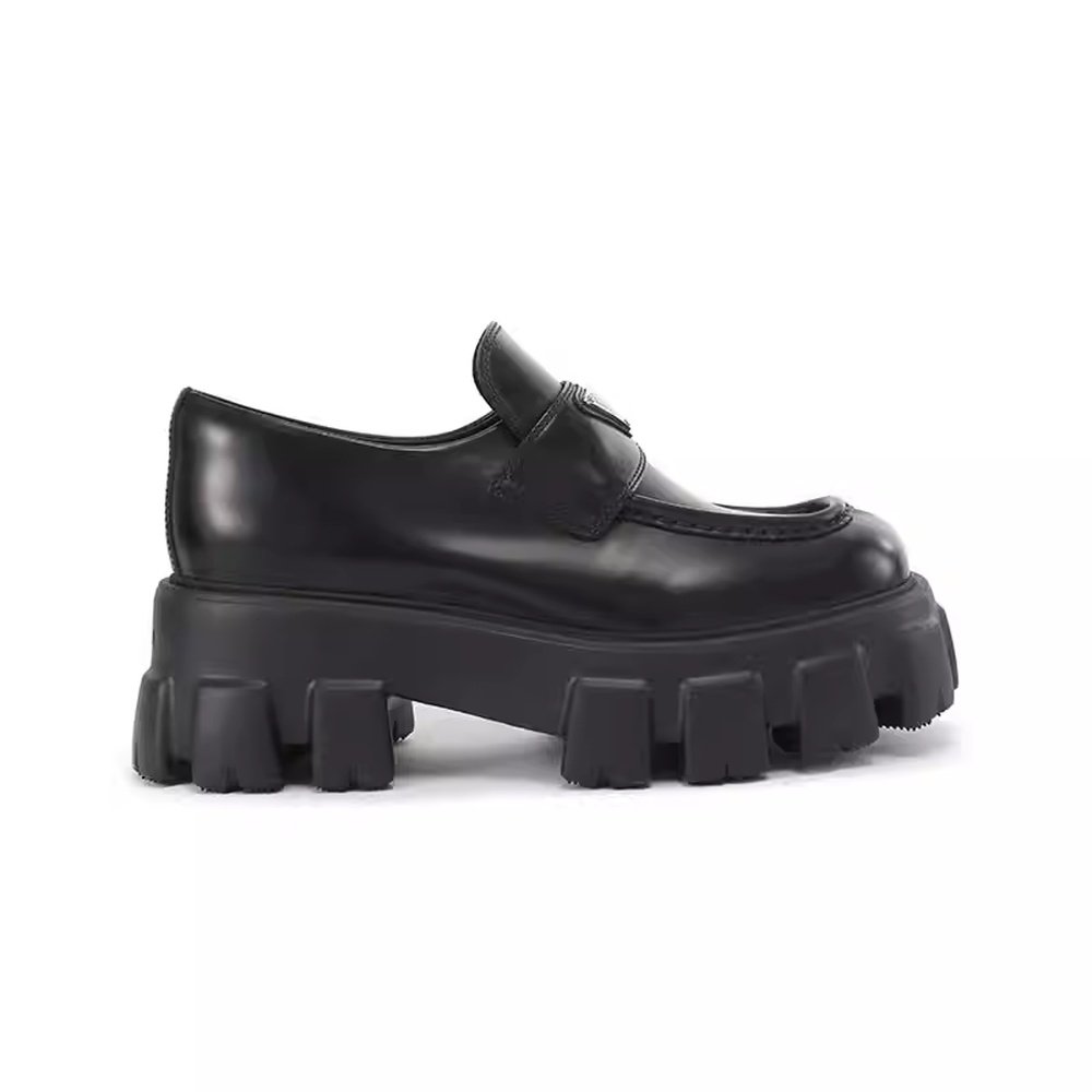 Prada普拉达Monolith三角标真皮女士复古便鞋乐福鞋